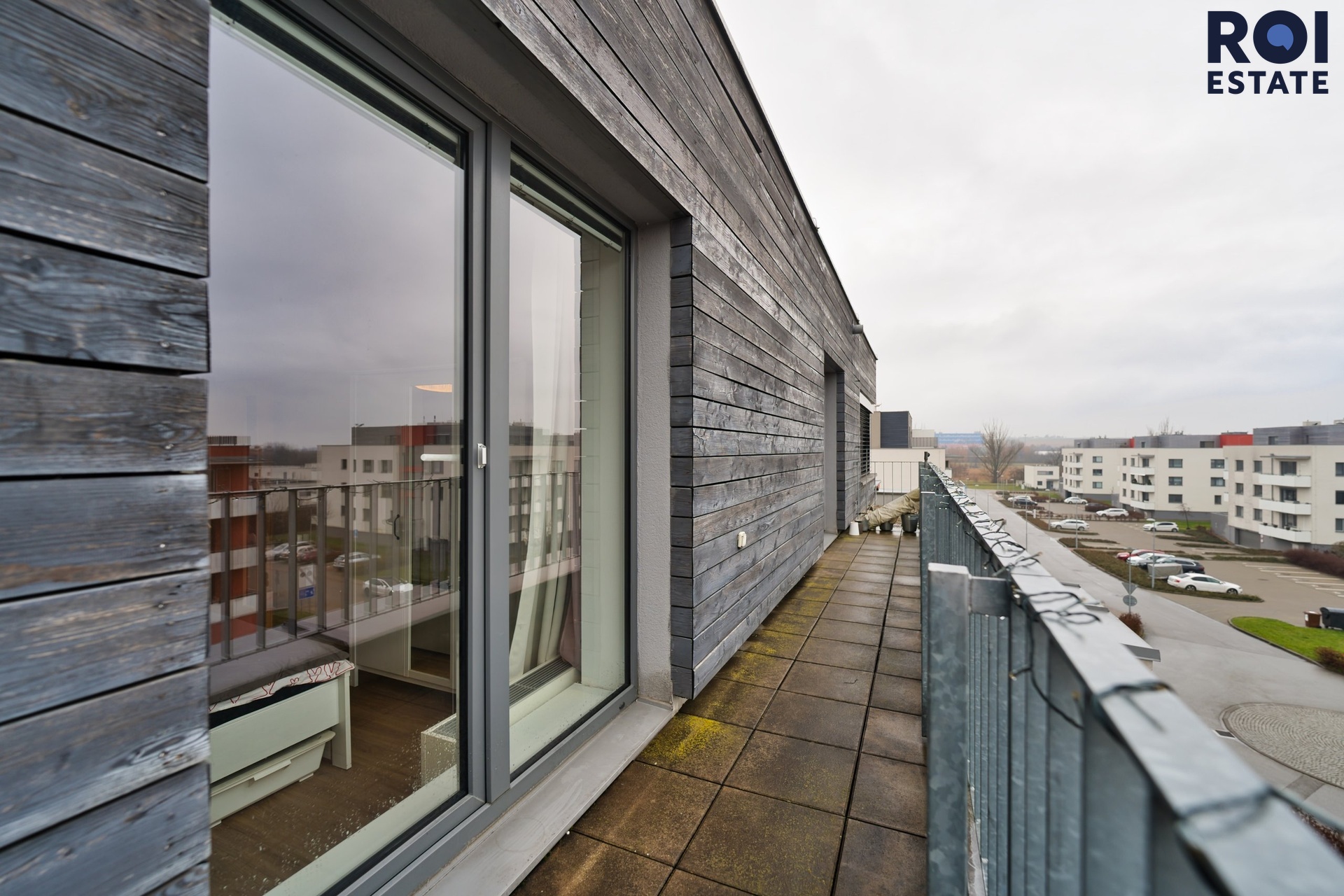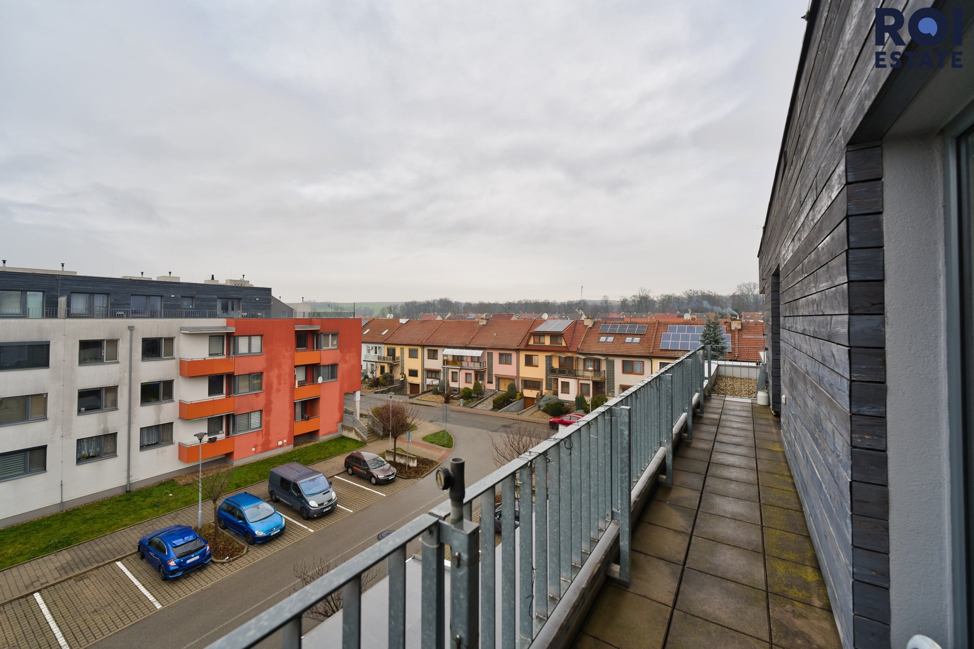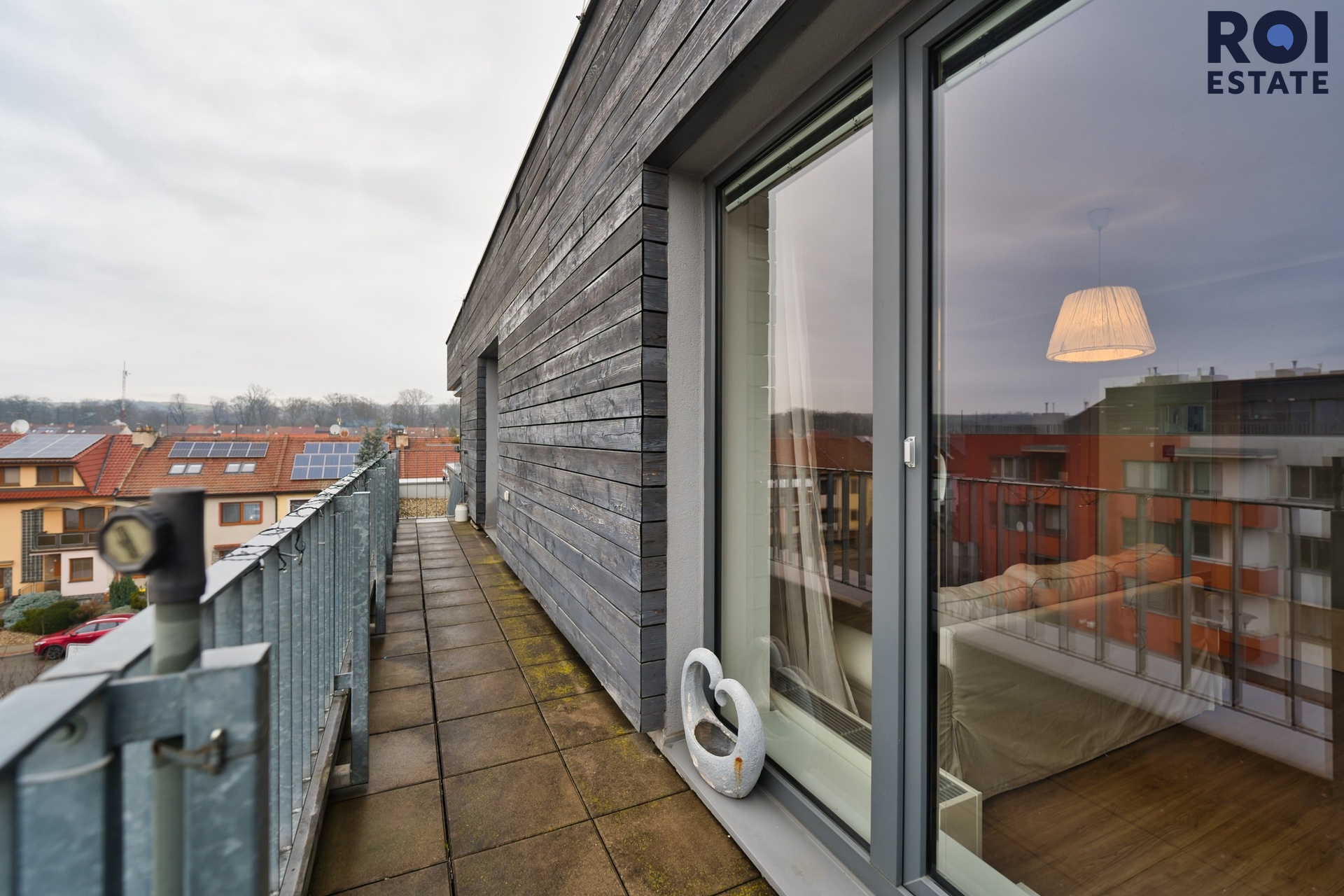 K bytu patří také terasa, ideální na relax u kávy či posezení večer, a praktický sklep, který nabídne další úložné místo.