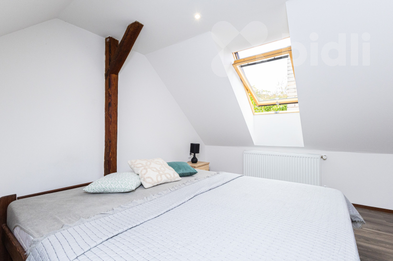 Dům má celkovou užitnou plochu přibližně 102 m2 a prošel kompletní rekonstrukcí. V přízemí se nachází útulný obytný pokoj s kamny, kuchyně, koupelna, samostatné WC s úklidovou místností, obývací pokoj a vstupní chodba. V nově vybudovaném podkroví je prostorný dětský pokoj, příjemná ložnice a chodba. Součástí domu je také sklep o velikosti 13,2 m2 a menší dvůr. Zahrada zde není, což ocení každý, kdo preferuje bydlení bez nároků na údržbu většího pozemku.