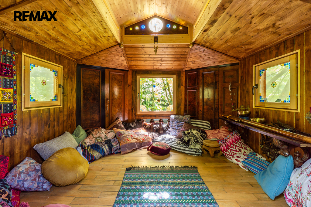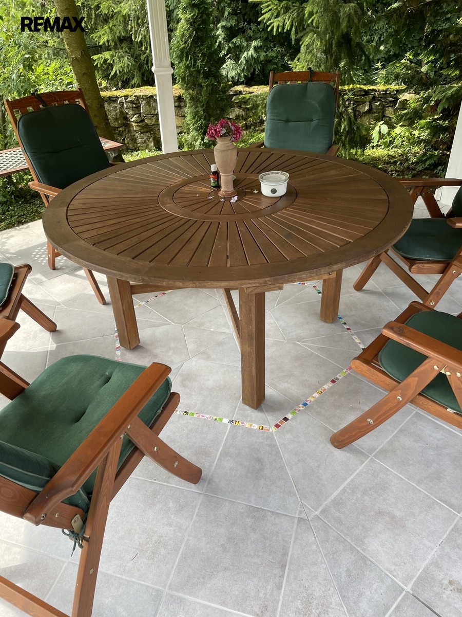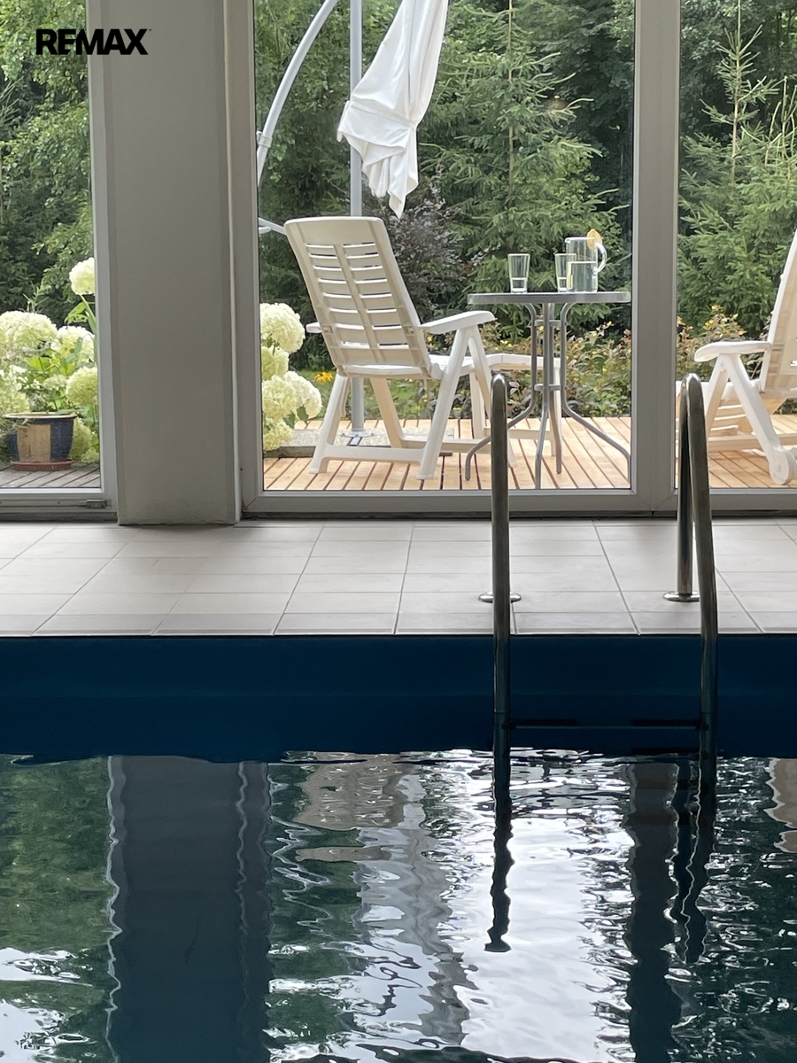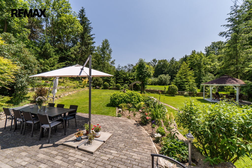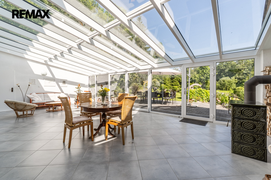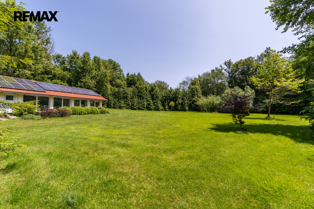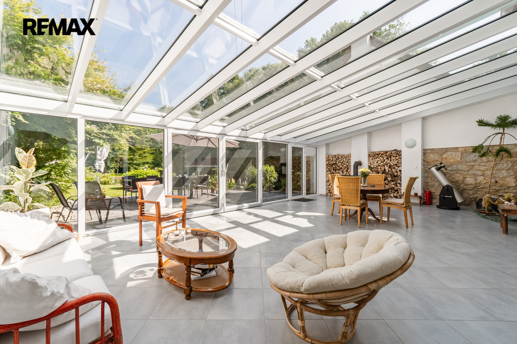 Dům je napojen na moderní fotovoltaický systém s bateriemi a vytápěn tepelným čerpadlem vzduch–voda, což z něj činí energeticky soběstačný a ekologický objekt. Zimní zahrada se stínicí technikou reagující na počasí poskytuje klidné útočiště během celého roku. Venku vás okouzlí bazén se sladkou vodou a tepelným čerpadlem, sprchou a toaletou, vše navržené s důrazem na pohodlí. Zahrada je nejen pečlivě upravená, ale i jedinečně koncipovaná – její chloubou je majestátní kalifornská sekvoj, vzrostlý unikátní strom zasazený před 15 lety, který vytváří impozantní dominantu rozlehlé zahrady. Nechybí ani klidová zóna s dřevěným domečkem na stromě (tree house) a meditačním „templem“ vytvořeným unikátním materiálem - z desek starých klavírů.