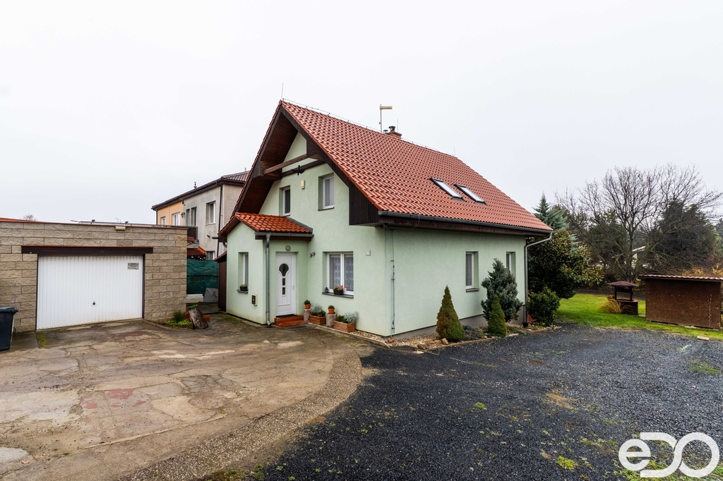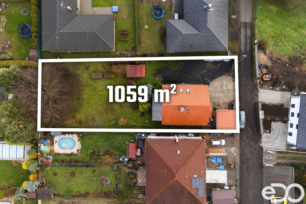 Pozemek má obdélníkový tvar a lze jej případně rozdělit na dva, což vytváří zajímavý investiční potenciál. Součástí zázemí je samostatná garáž s elektrickými vraty a další parkovací místa na zpevněné ploše přímo před domem.