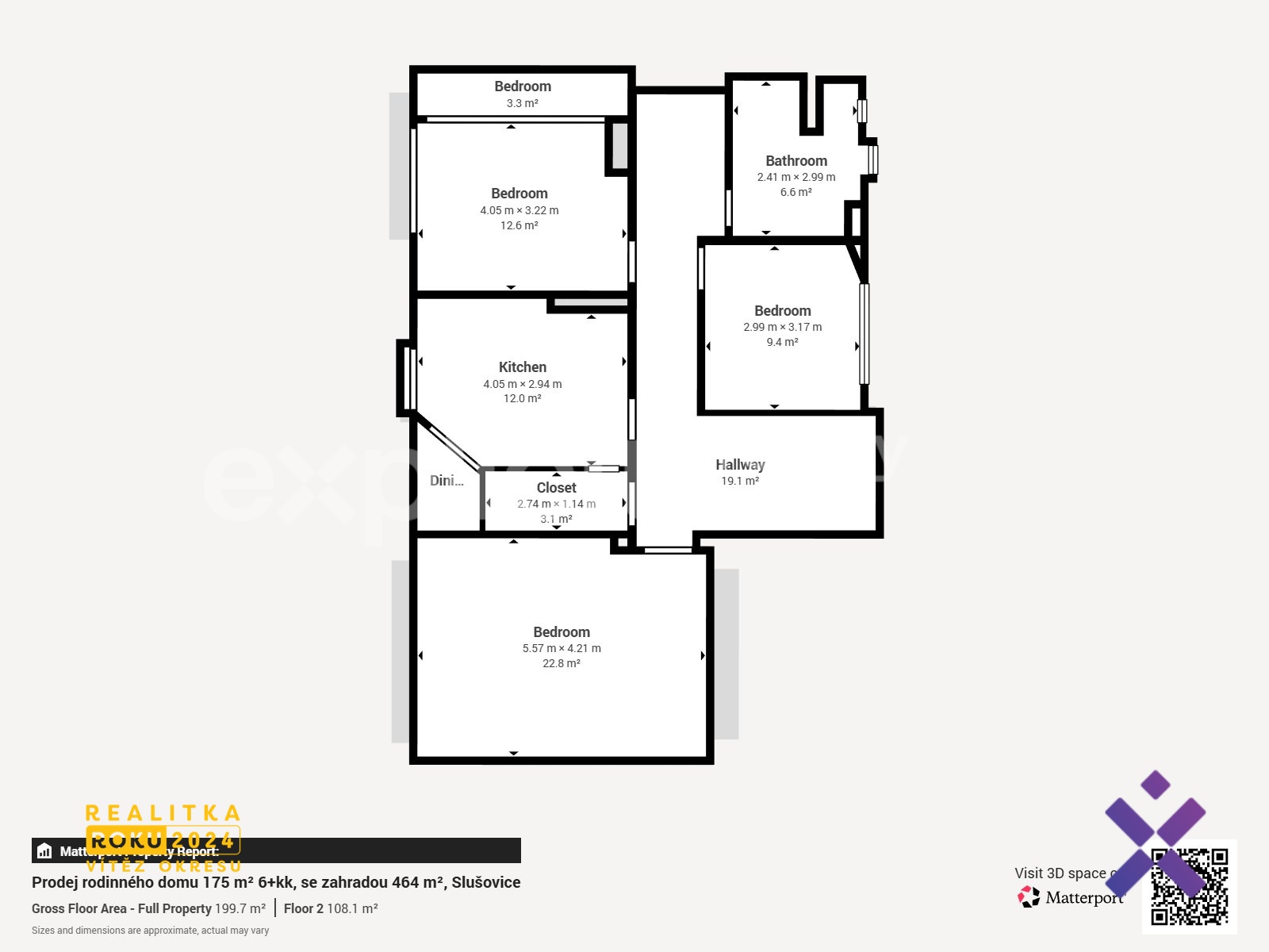 v prvním patře obývací pokoj, ložnici, dětský pokoj, koupelnu s WC, kuchyni a spižírnu druhé patro tvoří půdní prostory s dalším potenciálem využití