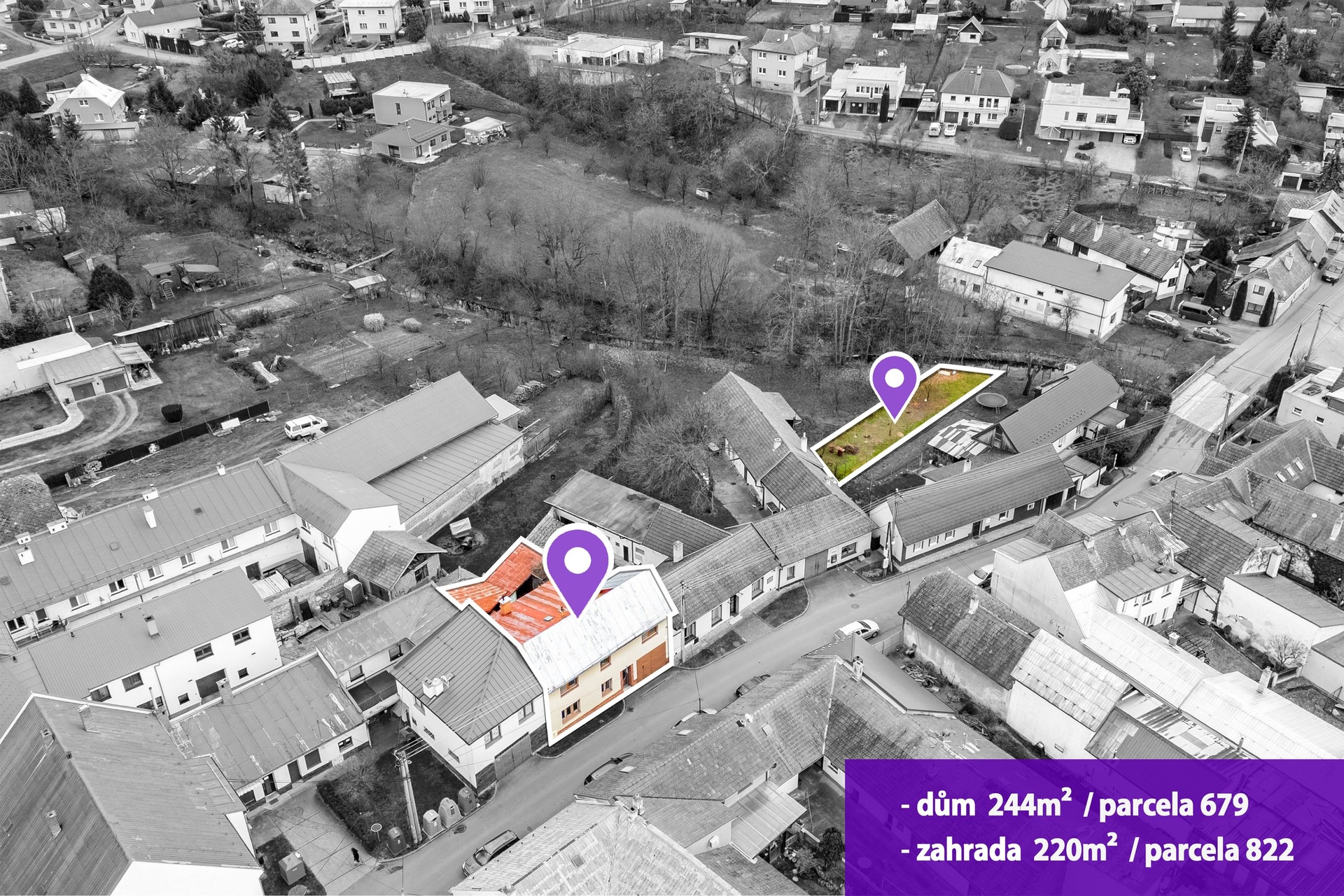 Nemovitost stojí na pozemku o celkové výměře 244 m², z toho zastavěná plocha a nádvoří činí 244 m². K domu náleží také zahrada o výměře 220 m², která se nachází přibližně 50 metrů od domu. Parkování je možné přímo před domem nebo v průjezdu.