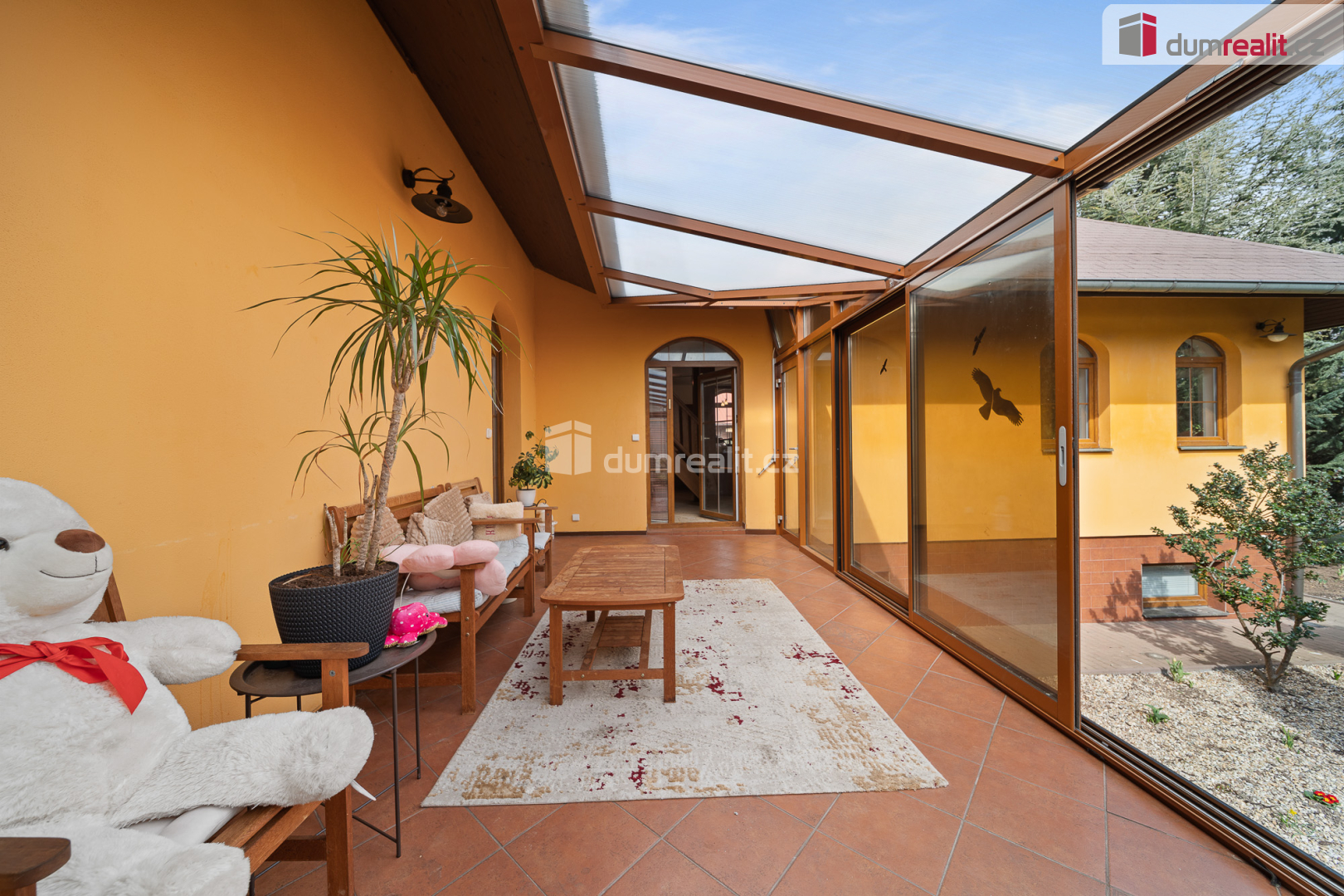 Dům stojí na zastavěné ploše 221m² s přilehlým pozemkem o velikosti 681 m². Na zahradě se nachází venkovní pergola s posezením ideální pro grilování a relaxaci. Samozřejmostí je garáž a navíc venkovní kryté parkovací stání. Součástí nemovitosti je zimní, krytá zahrada přístupná přímo z přízemí objektu.