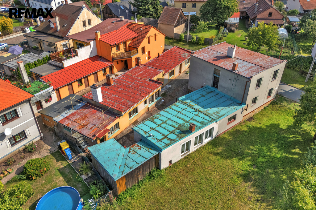 V zahradě se nacházejí další dvě zděné garáže (30 m² a 36 m² - do jedné garáže se vejdou dvě auta), které poskytují dostatek prostoru pro parkování nebo dílenské využití. Domy jsou určeny k rekonstrukci.