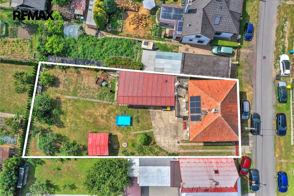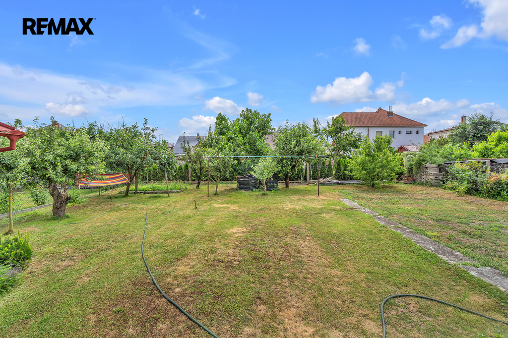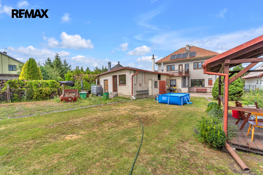 Na udržované zahradě najdete zděnou garáž, kůlnu, dílnu a pergolu. Díky své velikosti nabízí zahrada dostatek místa pro relaxaci, dětské hry i zahradničení.