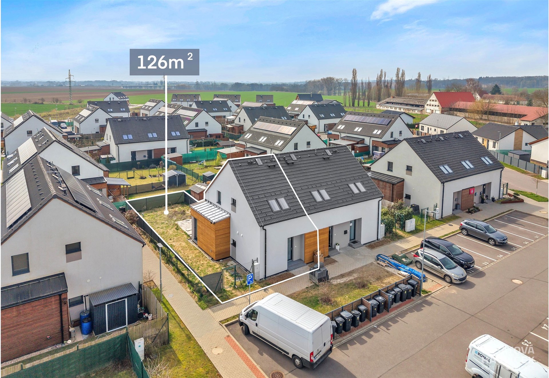 Tato dřevostavba, kolaudovaná v roce 2026, odpovídá požadavkům na energeticky úsporné bydlení. Nabízí kvalitní zateplení, plastová okna s izolačními trojskly a jako bonus inteligentní stínění – elektrické venkovní žaluzie s ovládáním na dálku. Energetická třída B spolu s nadstandardní tepelnou izolací a fotovoltaikou přispívá k nízkým provozním nákladům.
