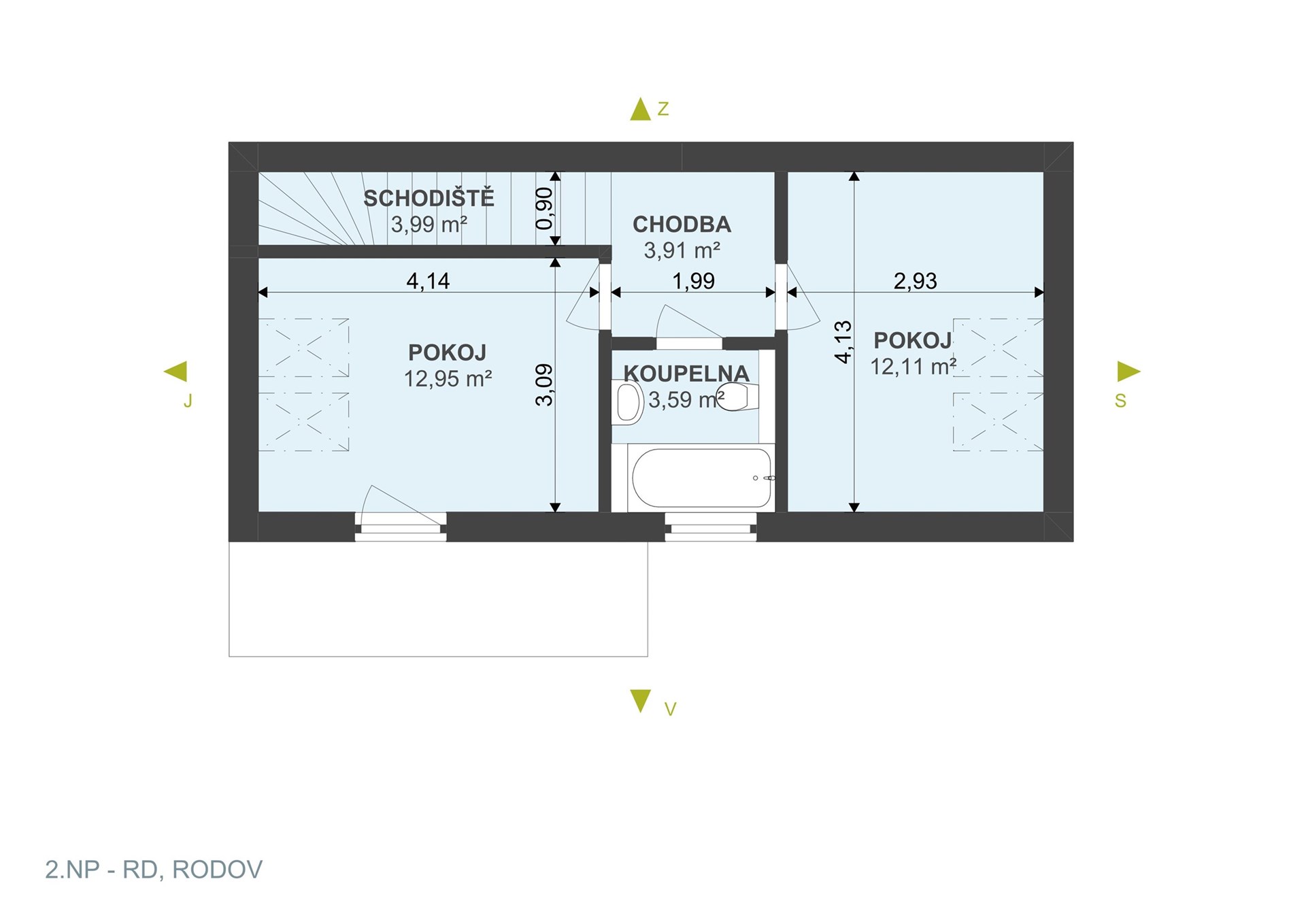 Krajní bytová jednotka je rozložena do 1. a 2. nadzemního podlaží. Celková výměra, včetně vnitřních příček, činí 101,9 m² a její součástí je i půdní prostor (20,69 m²). Byt byl realizován v prémiovém provedení s cílem nabídnout maximální komfort, kvalitní materiály a dlouhou životnost.