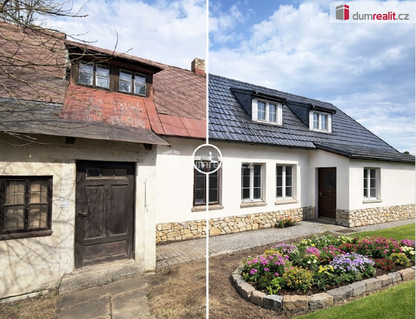 Přízemí domu o zastavěné ploše 174 m² disponuje prostornou místností s původním určením pro hostinec, doplněnou o dvě menší skladové místnosti. Dále zde naleznete kuchyň, dva obytné pokoje, koupelnu a dvě samostatné toalety. Samostatným vchodem v levé části přízemí se dostanete do útulného podkrovního bytu 1+1 s vlastní koupelnou a WC. Ideální pro samostatné bydlení člena rodiny nebo na pronájem. Část podkroví zůstává neupravena, nyní slouží jako úložný prostor. Do budoucna má potenciál pro rozšíření obytné části. Celý dům je pečlivě odizolován, vytápění je řešeno kombinací plynových topidel a elektrického topení, teplou vodu pak zajišťují spolehlivé elektrické průtokové ohřívače.