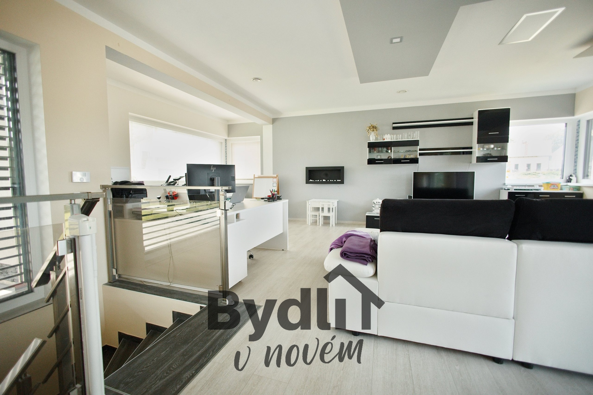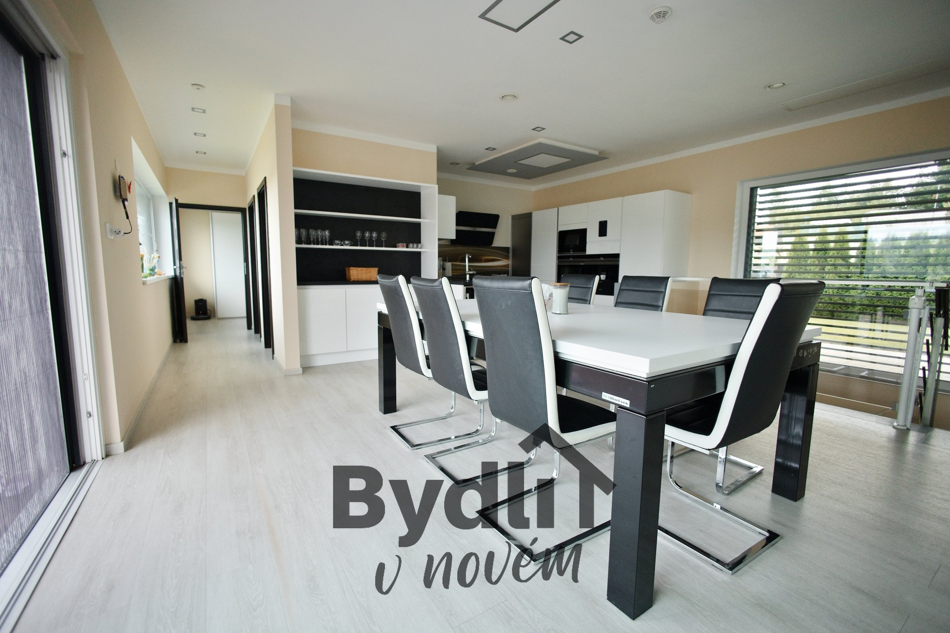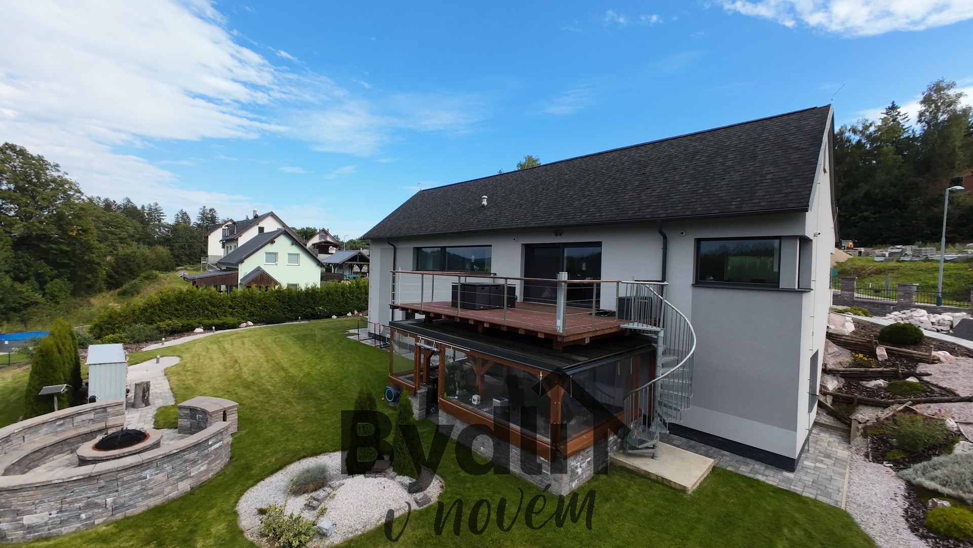 Nabízíme vám k prodeji unikátní nízkoenergetickou rezidenci 5+2kk na velkorysém pozemku 1 913 m², která definuje moderní standard bydlení.