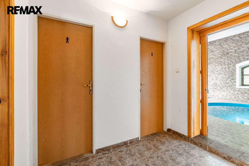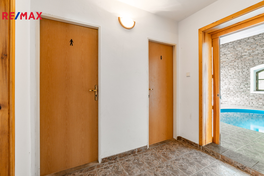 • Pension (cca 367 m²) s vnitřním bazénem – novější objekt před kolaudací. Nabízí široké možnosti využití – ubytování, wellness, svatby, firemní akce.