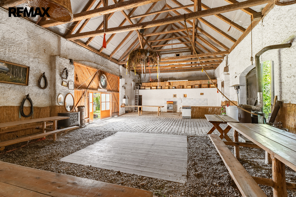 • Stodola (cca 130 m²) – krytý prostor pro posezení početné skupiny hostů, rauty, svatební obřady apod.