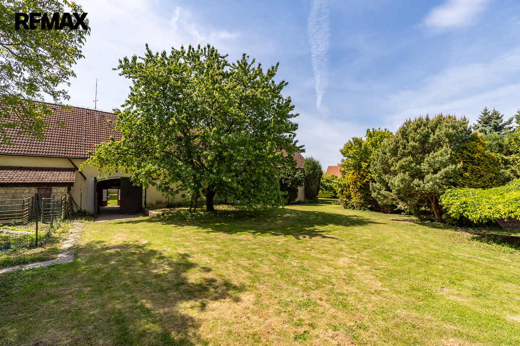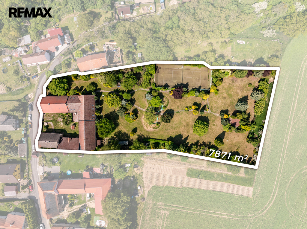 • Vedlejší stavby (cca 80 m²) – zázemí pro zahradní techniku, případně ustájení zvířat.