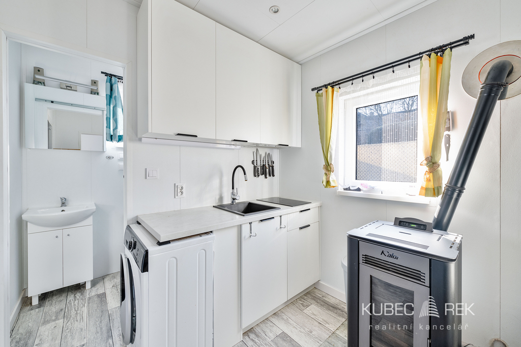 Dům stojí na pozemku o rozloze 396 m² a disponuje veškerým zázemím pro pohodlný pobyt. Voda je zajištěna vlastním vrtem o hloubce 42 metrů s vydatností 600 litrů za den, odpady jsou svedeny do jímky o objemu 6 m³. Vytápění domu je řešeno automatickým kotlem na pelety, který zaručuje nízké provozní náklady – pouhých 4 000 Kč ročně. O teplou vodu se stará bojler o objemu 80 litrů. Součástí nabídky je také dřevěná terasa o rozměru 3 × 3 metry, která je připravena k instalaci a následně nabídne ideální prostor pro ranní kávu, večerní posezení nebo letní grilování.