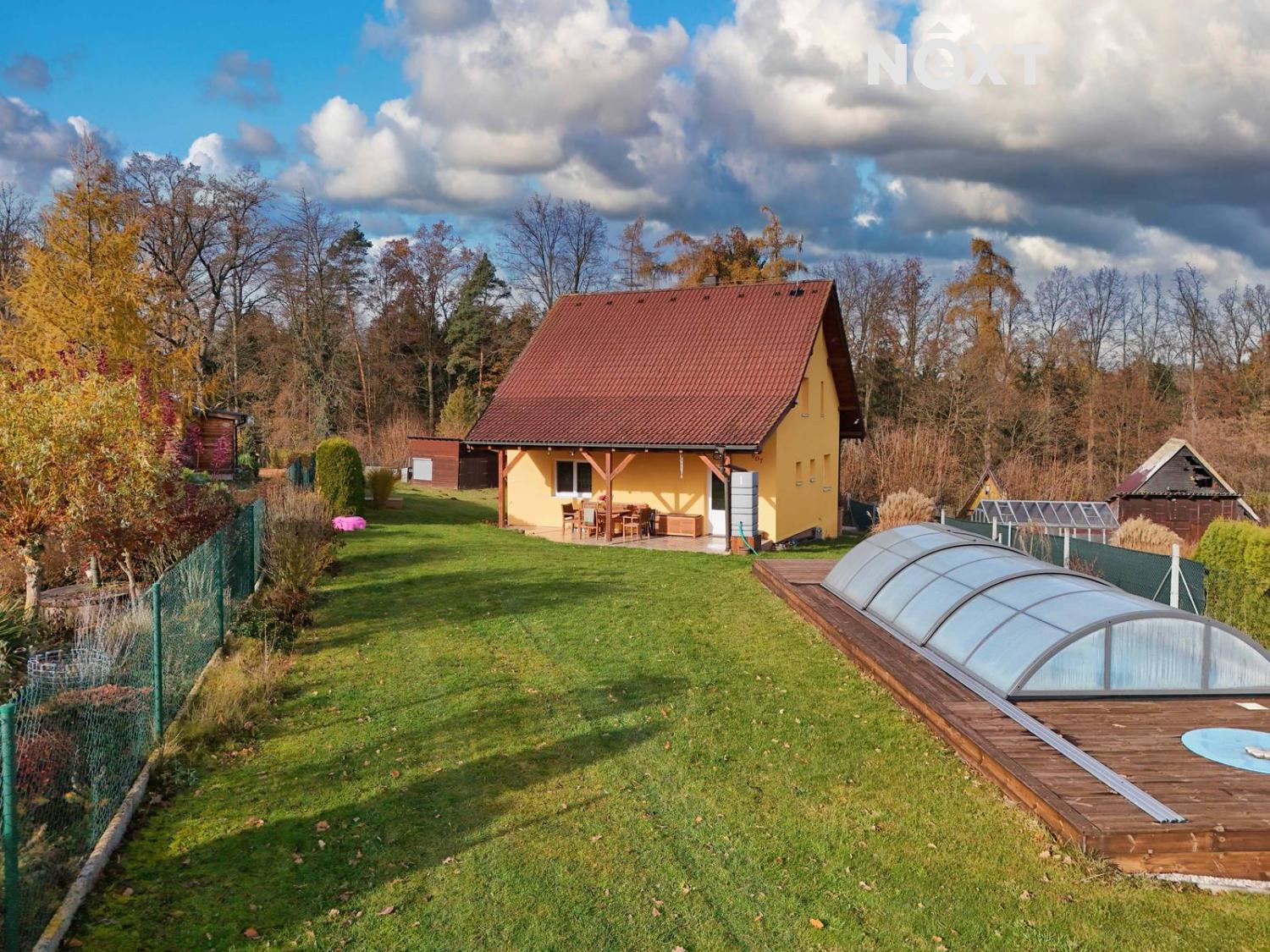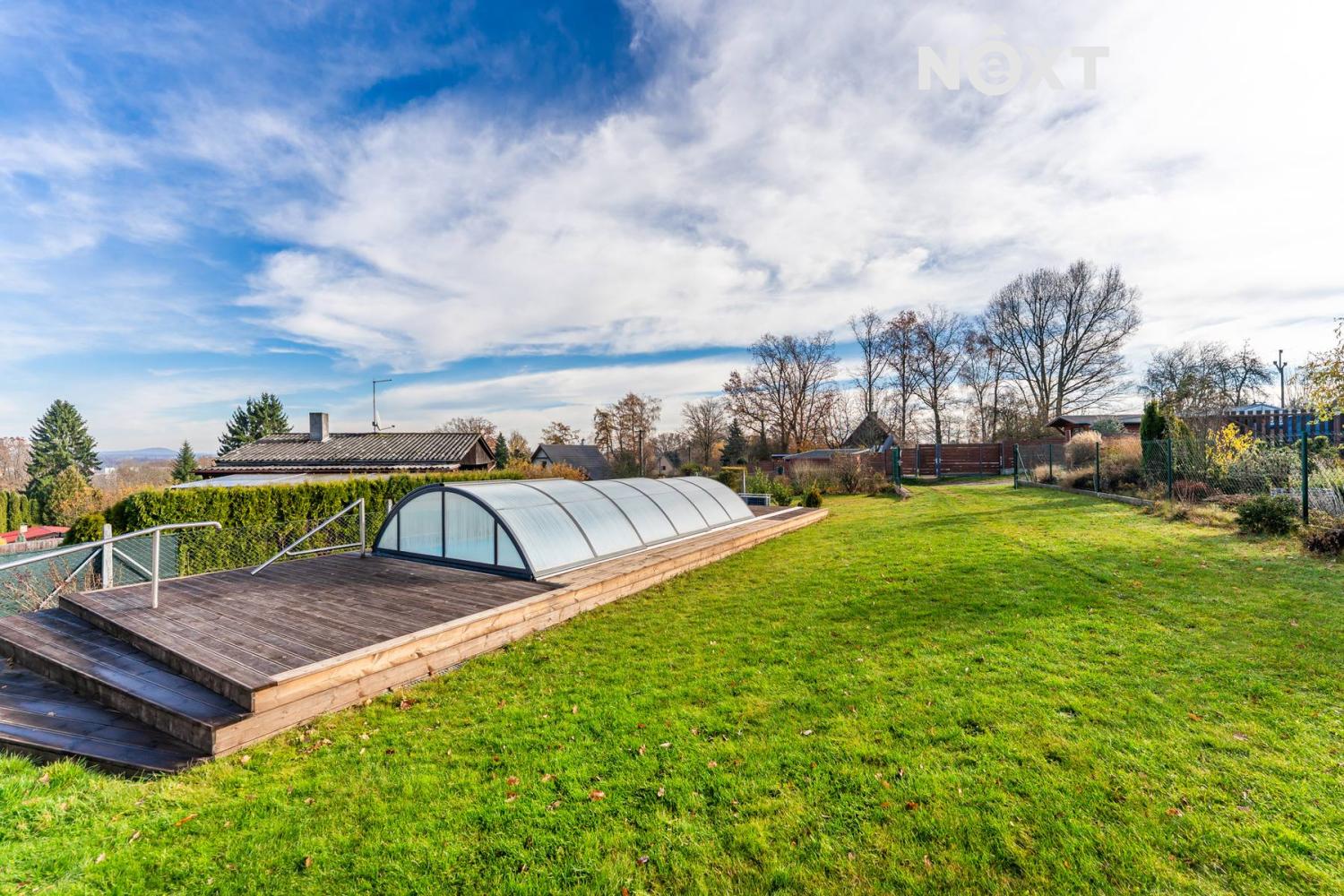 Velkorysý pozemek o rozloze 1 495 m² poskytuje naprosté soukromí a krásný prostor obklopený zelení. Na zahradě najdete zastřešený 7metrový bazén, který nabízí relaxaci po velkou část roku. K tomu příjemná zastřešená terasa, ideální pro večerní posezení, grilování nebo odpočinek u kávy. Částečné podsklepení se sklepem o 10 m² je praktickým místem pro uskladnění vybavení i sezónních věcí.