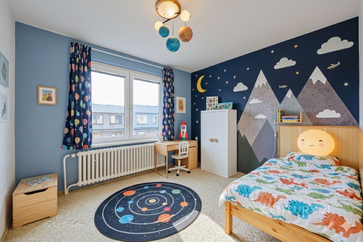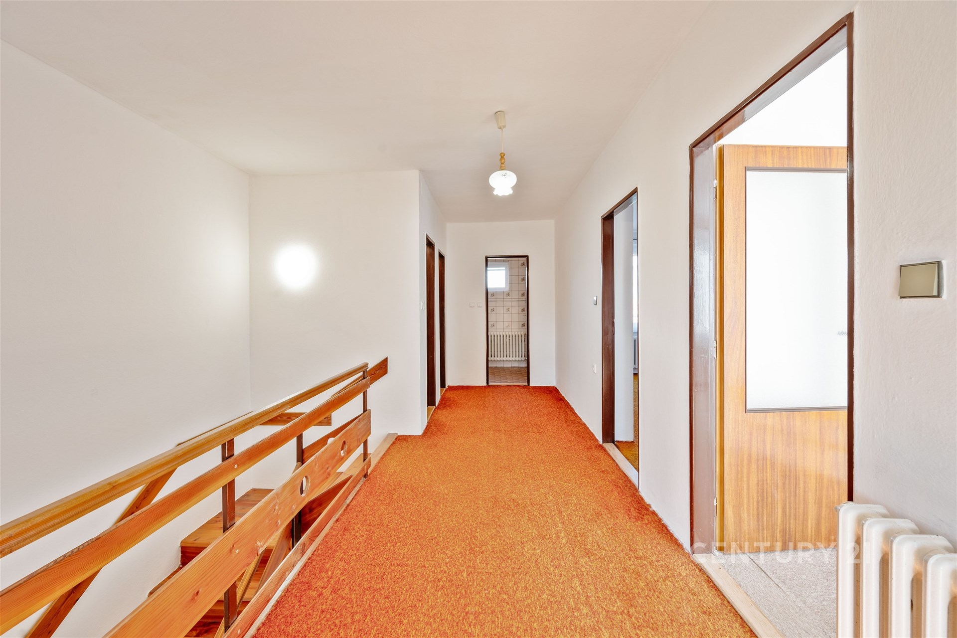 V patře jsou tři pokoje, dva z nich s lodžií, koupelna, druhé WC a komora, takže každý člen rodiny může mít svůj pokoj a dostatek soukromí.