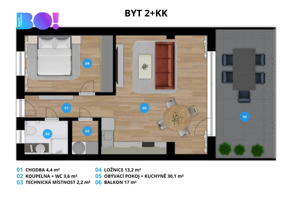 BO! Reality vám s velkou radostí představuje k prodeji nádherný a zcela nový apartmán 2+kk v srdci Horních Soběšovic, jen pár kroků od přehrady.