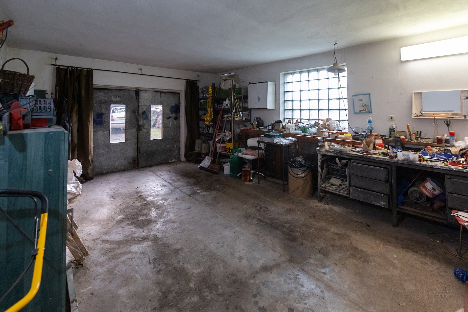 Přízemí (106 m²) se třemi místnostmi, garáží a vstupem do sklepa (18,5 m²) nabízí technické zázemí i výborný potenciál pro vybudování dalších obytných prostor. Díky třem samostatným vstupům, je dispozice ideální pro oddělení domu na dvě bytové jednotky.