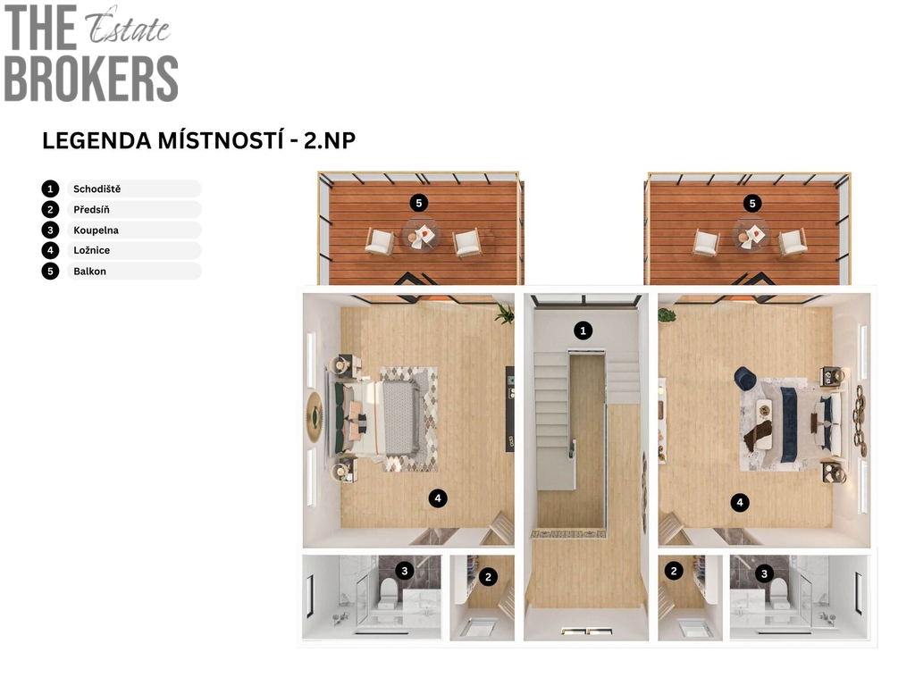 Vila je koncipována nejen pro pohodlné bydlení, ale také jako výhodná investice pro krátkodobé pronájmy, oblíbené turisty z celého světa. Dům má tři velkorysé ložnice, každá s vlastní koupelnou a terasou o velikosti 15 m2, což zajišťuje maximální soukromí a komfort pro hosty.