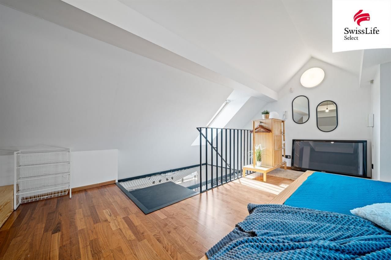 Tento mezonet v 5. a 6. patře nabízí vzdušný prostor s dřevěnými podlahami, přírodními materiály a útulným designem.