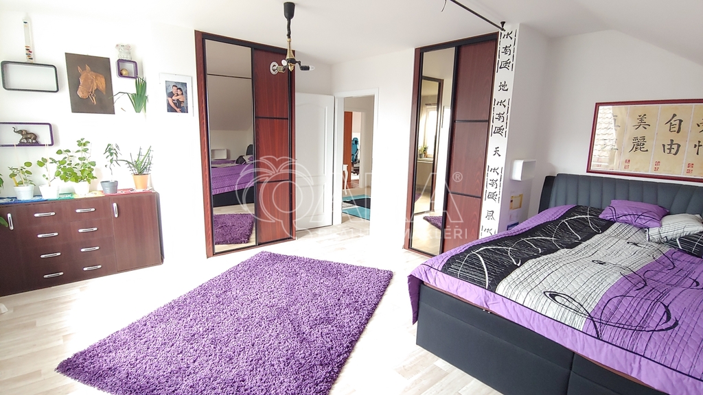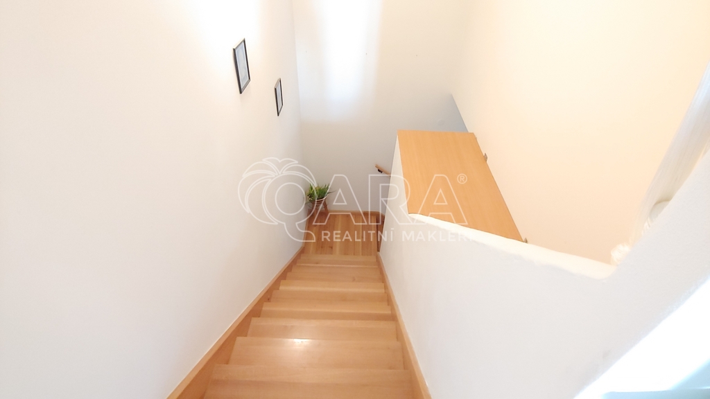 Z haly je také přístup na pochozí půdu – ideální pro uskladnění sezónních věcí. Horní patro lze snadno oddělit a využívat jako samostatný byt.