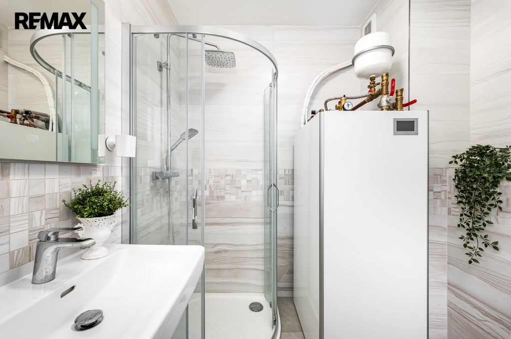 Vytápění i ohřev vody je pomocí tepelného čerpadla (voda vzduch), v celém domě je podlahové vytápění.