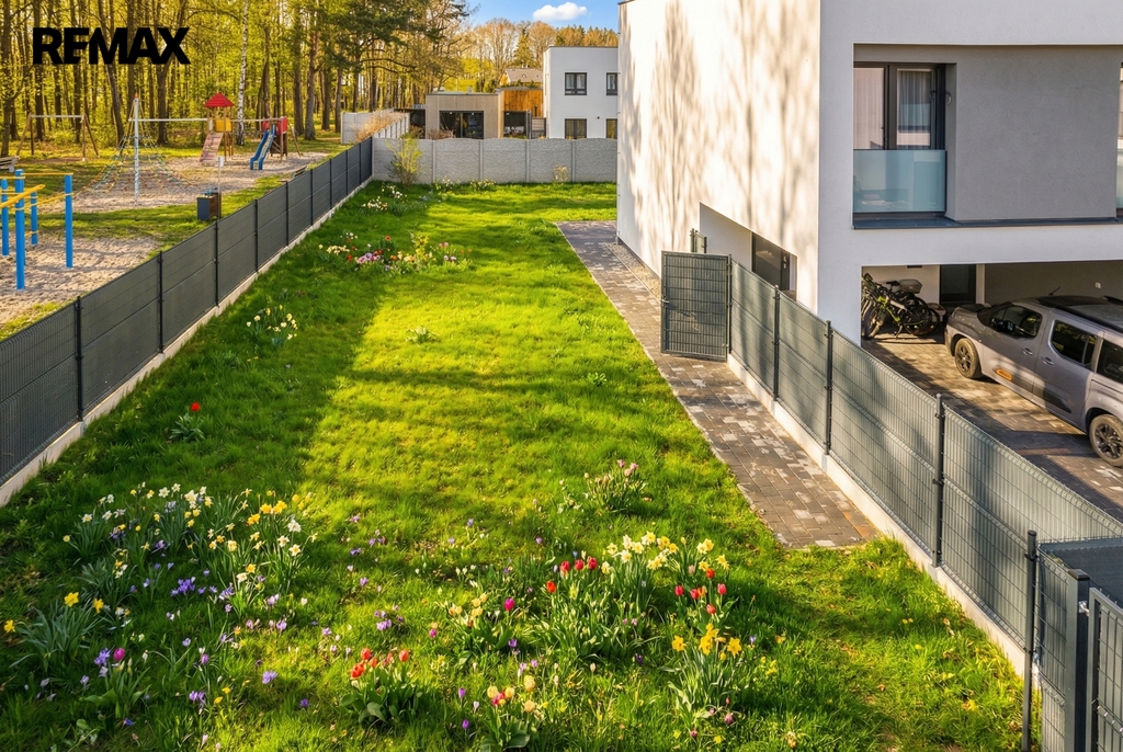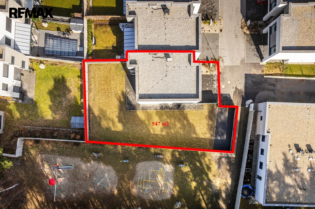 Jedná se o krajní řadový rodinný dům s větší zahradou o výměře 436 m2 (celková plocha pozemku je 547 m2).