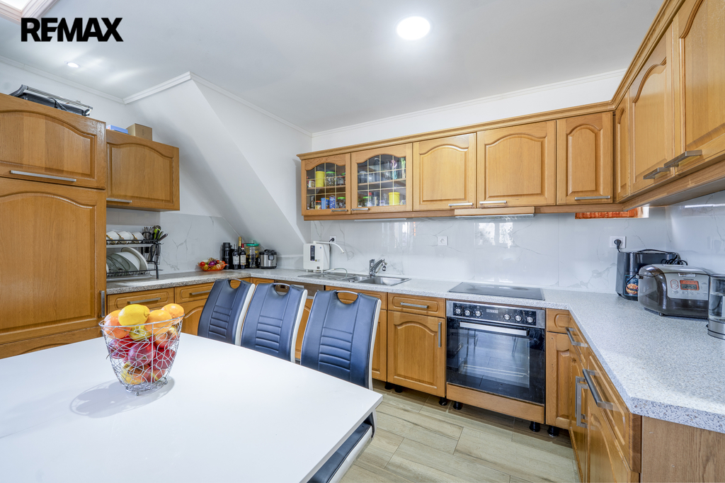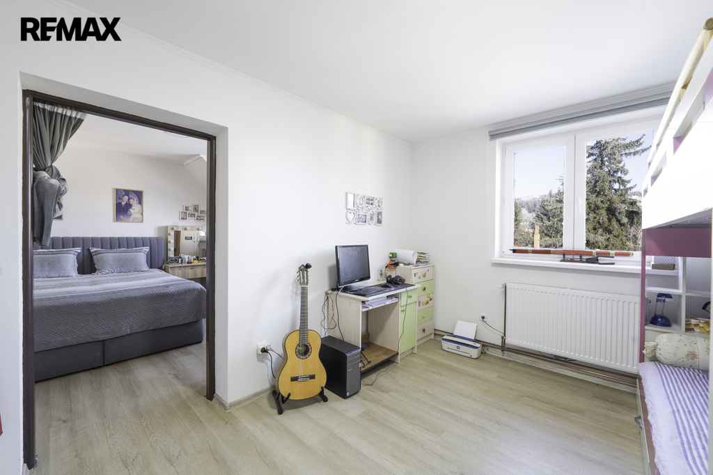 Ve druhém nadzemním podlaží je k dispozici bytová jednotka 5+kk, též včetně koupelny se sprchou a toaletou.