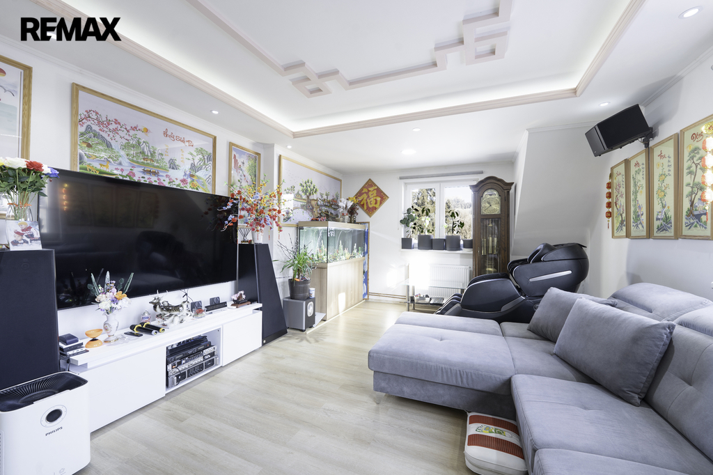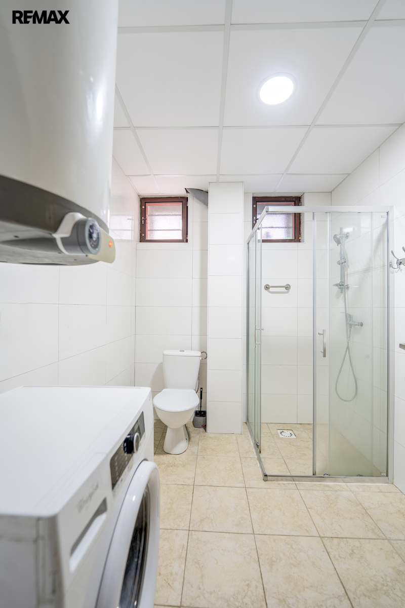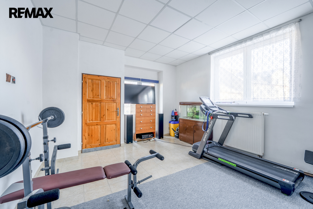 Dům je vybaven moderním tepelným čerpadlem vzduch-voda, což zajišťuje efektivní a ekologické vytápění. Součástí nemovitosti je také posilovna, přístupná přímo z interiéru. Vstup do sklepního prostoru cca 30 m2 a garáže, jsou také přístupné z interiéru, tyto prostory poskytují další úložné místo. Garáž s elektrickými vraty.