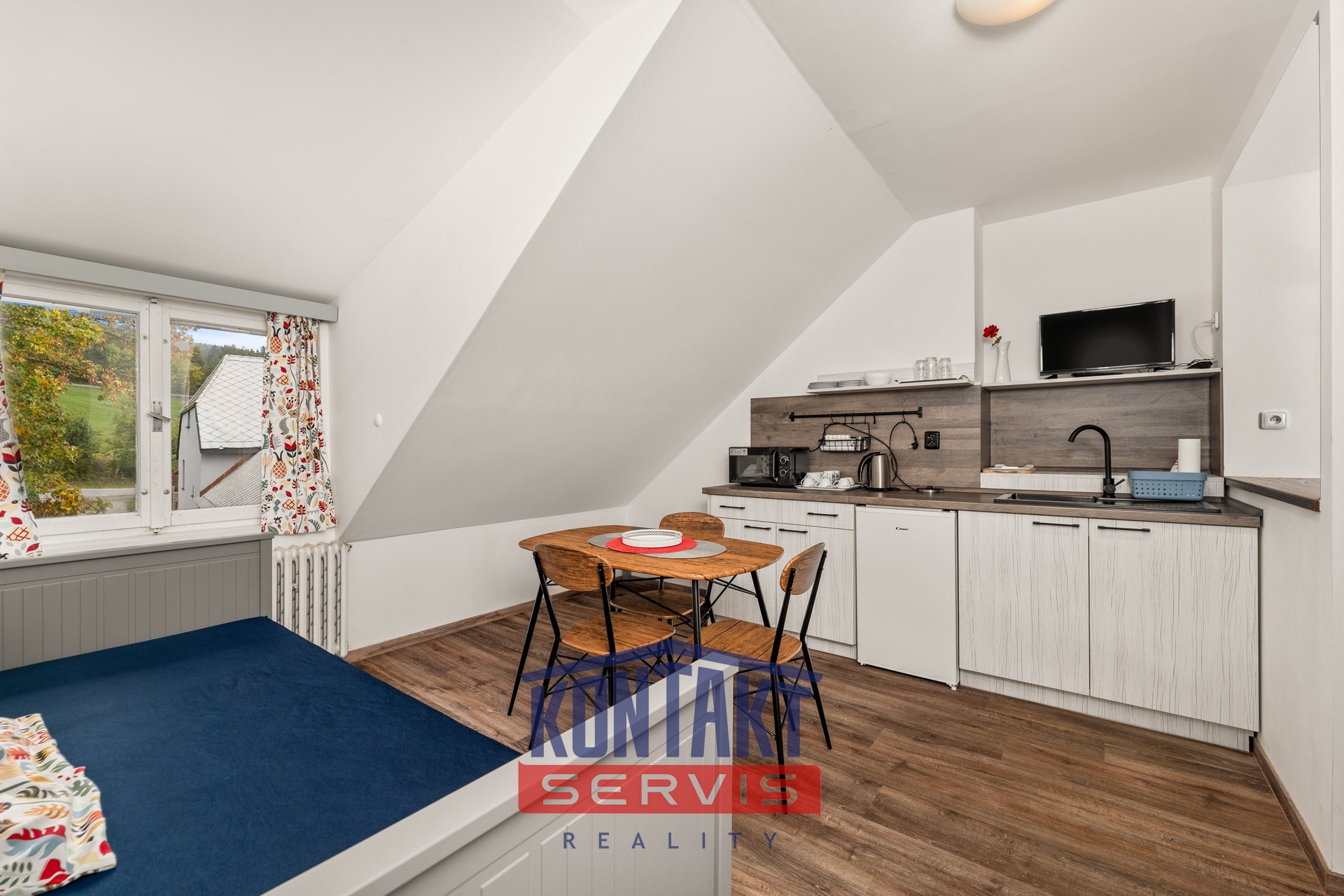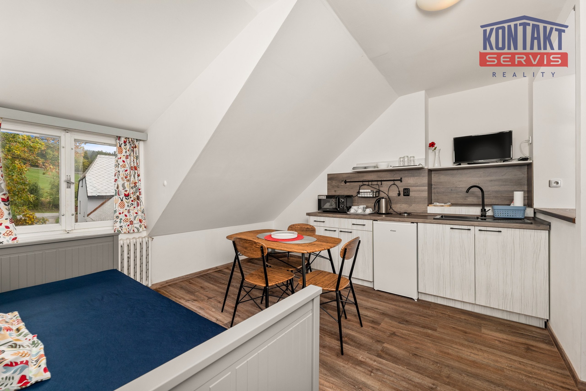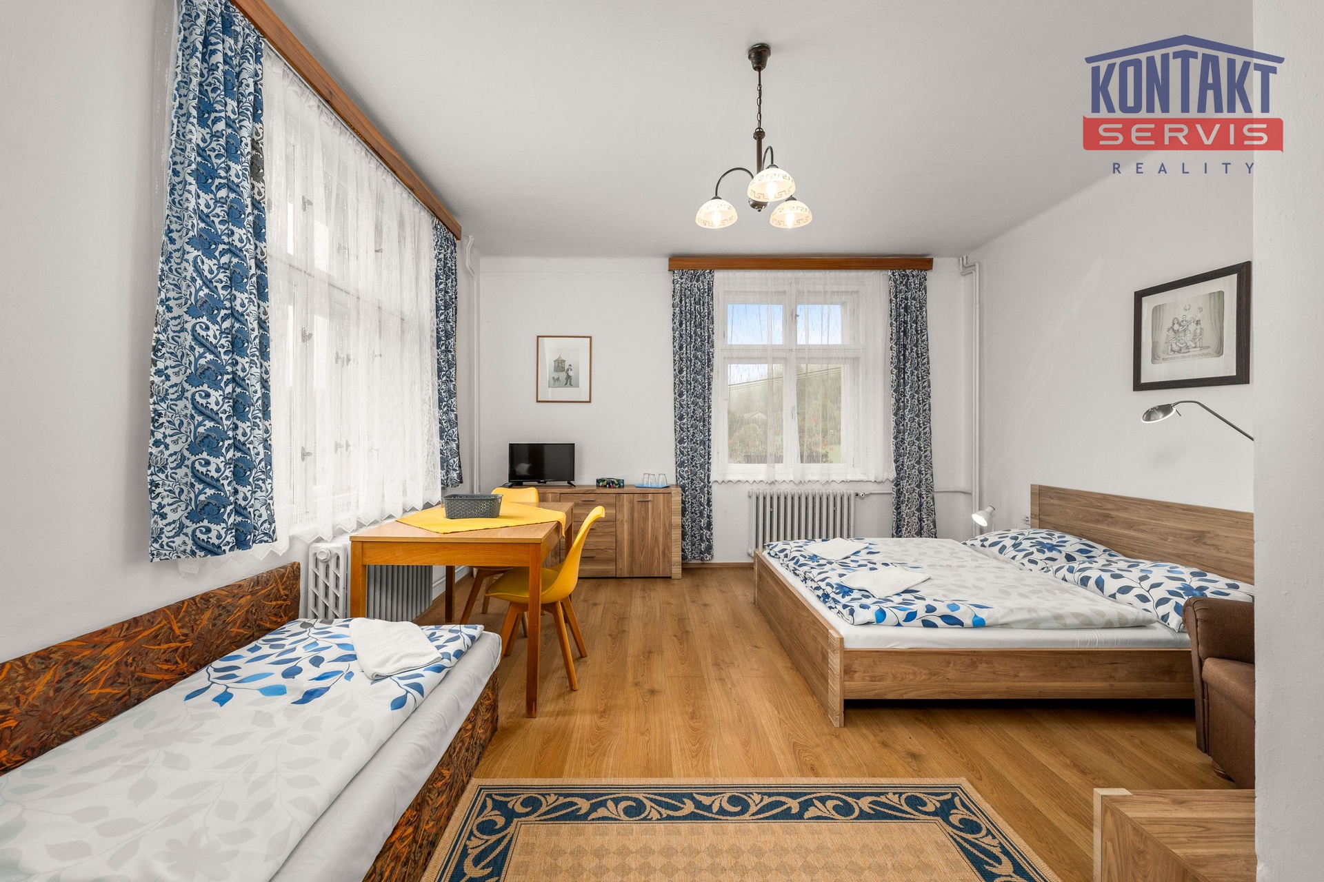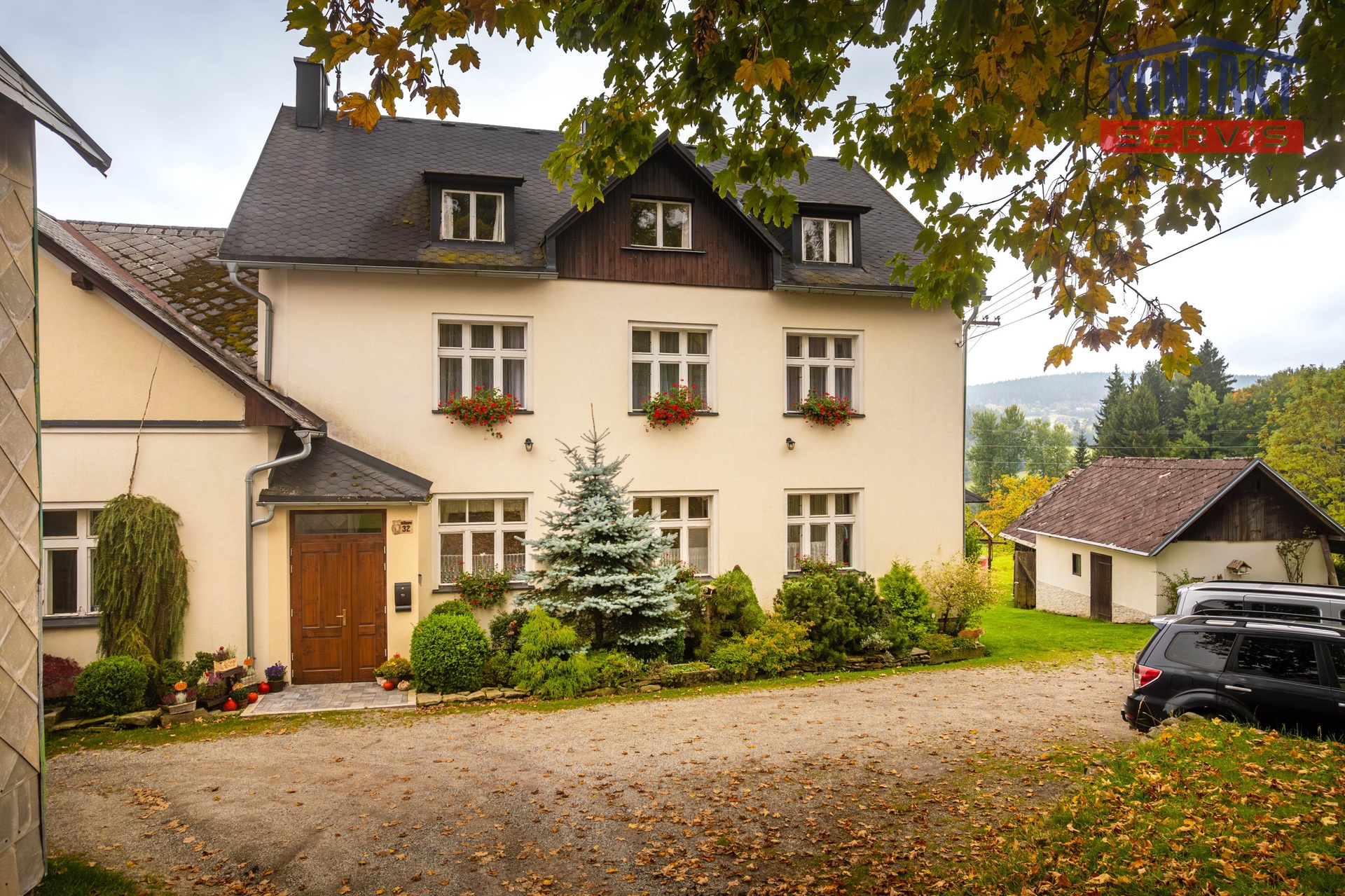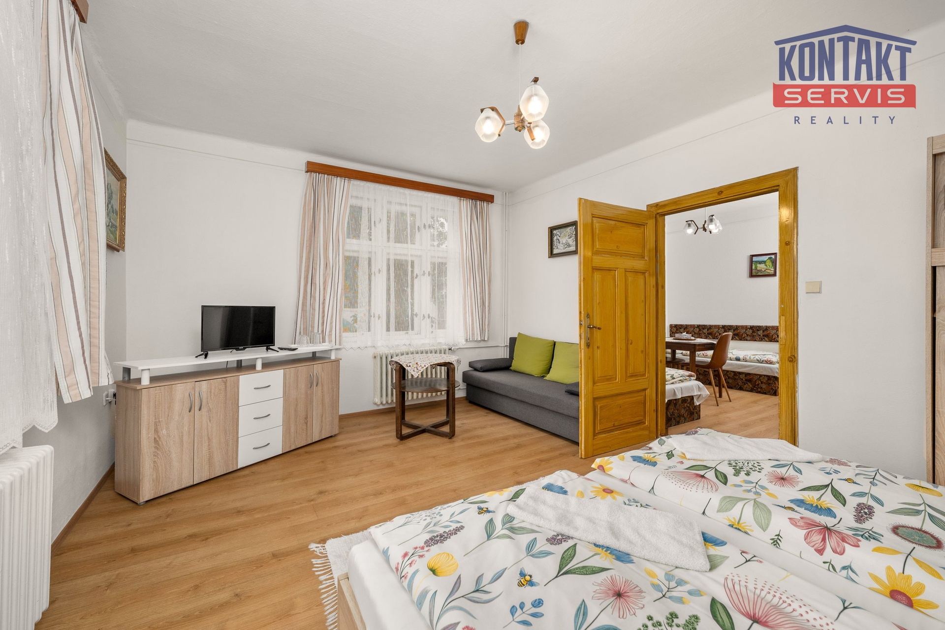 Nabízíme k prodeji **rozsáhlý rodinný dům s několika apartmány** v klidné šumavské lokalitě **Kůsov u Stach**. Nemovitost je ideální kombinací **vlastního bydlení a investice**, případně jako vícegenerační dům s možností krátkodobého i dlouhodobého pronájmu.