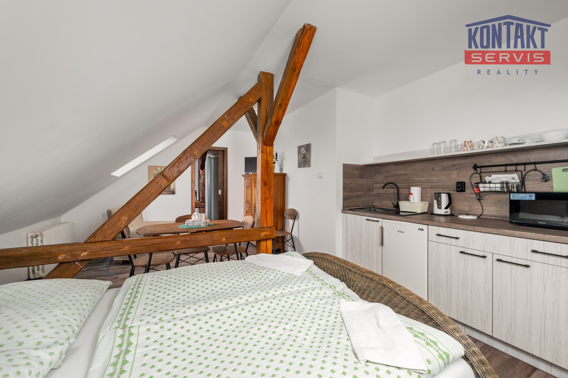 Celkem je v domě **6 samostatných apartmánů s kapacitou cca 22 lůžek**, každý s vlastním nebo sdíleným kuchyňským zázemím a koupelnou.
