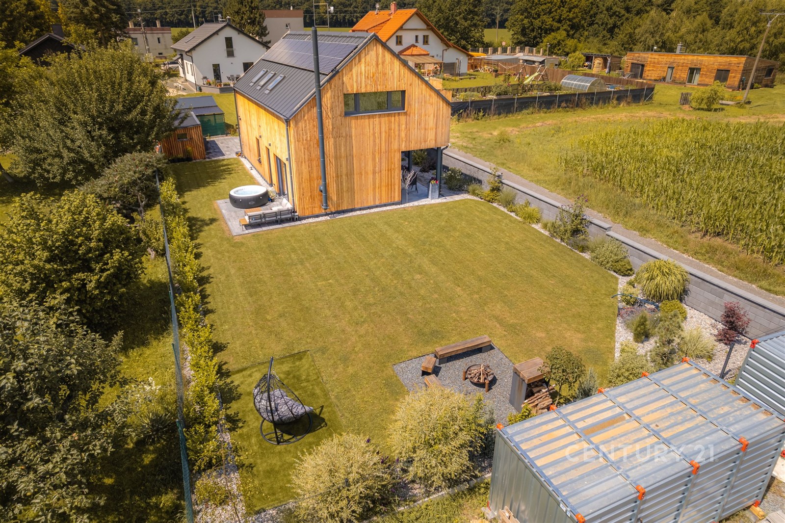 V domě jsou použity nadstandardních prvky, technologie a interiérového vybavení, které výrazně zvyšují komfort bydlení, estetickou hodnotu i energetickou soběstačnost. Dům disponuje FVE (12 panelů), tepelným čerpadlem a krbovými kamny, což zajišťuje nadstandardní energetickou soběstačnost. FVE GoodWe – výkon 4,5 kW, baterie 7,1 kWh, střídač 8 kW, tepelné čerpadlo Neoré 8GT (voda–vzduch) s funkcí podlahového vytápění a chlazení, Wallbox GoodWe 22 kW pro nabíjení elektromobilu.