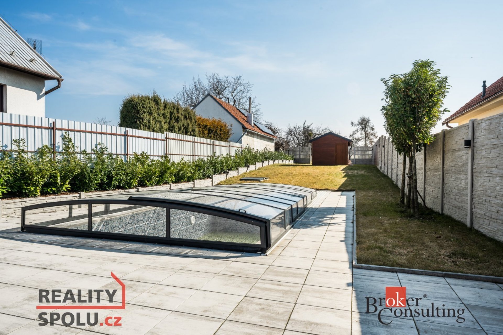 Součástí této nemovitosti je rozlehlá zahrada, která nabízí dostatek prostoru pro relaxaci i rodinné aktivity. Hlavní dominantou venkovního prostoru je velká terasa krytá pergolou s pohodlným zahradním posezením, ideální pro rodinné oslavy nebo chvíle s přáteli. Na pozemku najdete také velký krytý bazén o rozměrech 8 x 4 metry, který zajistí osvěžení v horkých letních dnech. Součástí je také zahradní domek, který je rozdělený na dvě části - přední slouží jako úložný prostor a zadní je vybavena kuchyňskou linkou.