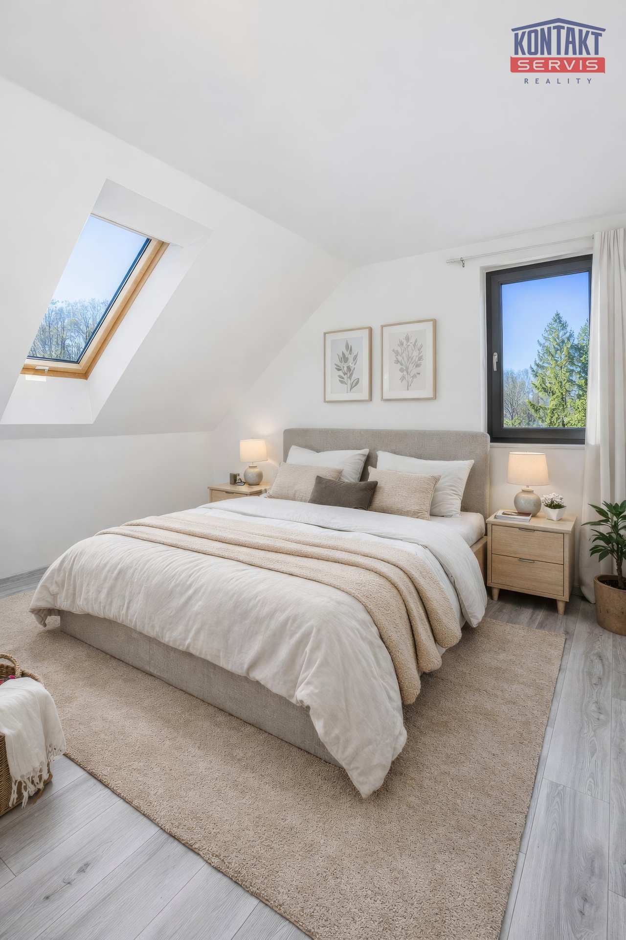 Tato nádherná polovina dvojdomu vznikla v režii zkušené rodinné stavební firmy, která ji budovala s jediným cílem – vytvořit skutečně kvalitní a promyšlené bydlení hodné té nejnáročnější rodiny. Každý metr čtvereční, každý materiál, každé technologické řešení – vše bylo voleno s maximální péčí a rozmyslem. A výsledek? Dům, do kterého se prostě zamilujete!