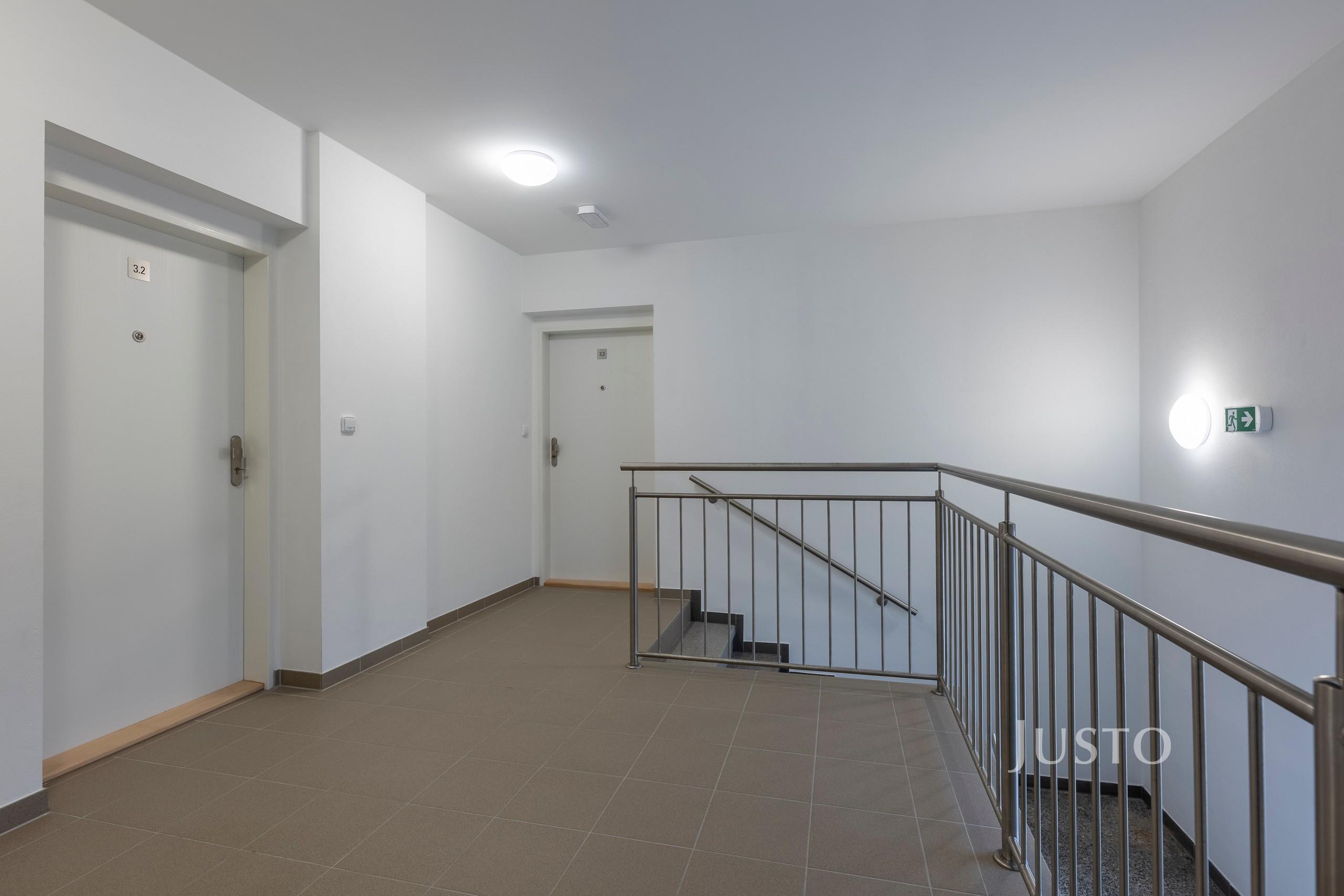 Byt se nachází ve 3. nadzemním podlaží třípodlažního cihlového domu a je navržen jako jednopodlažní.