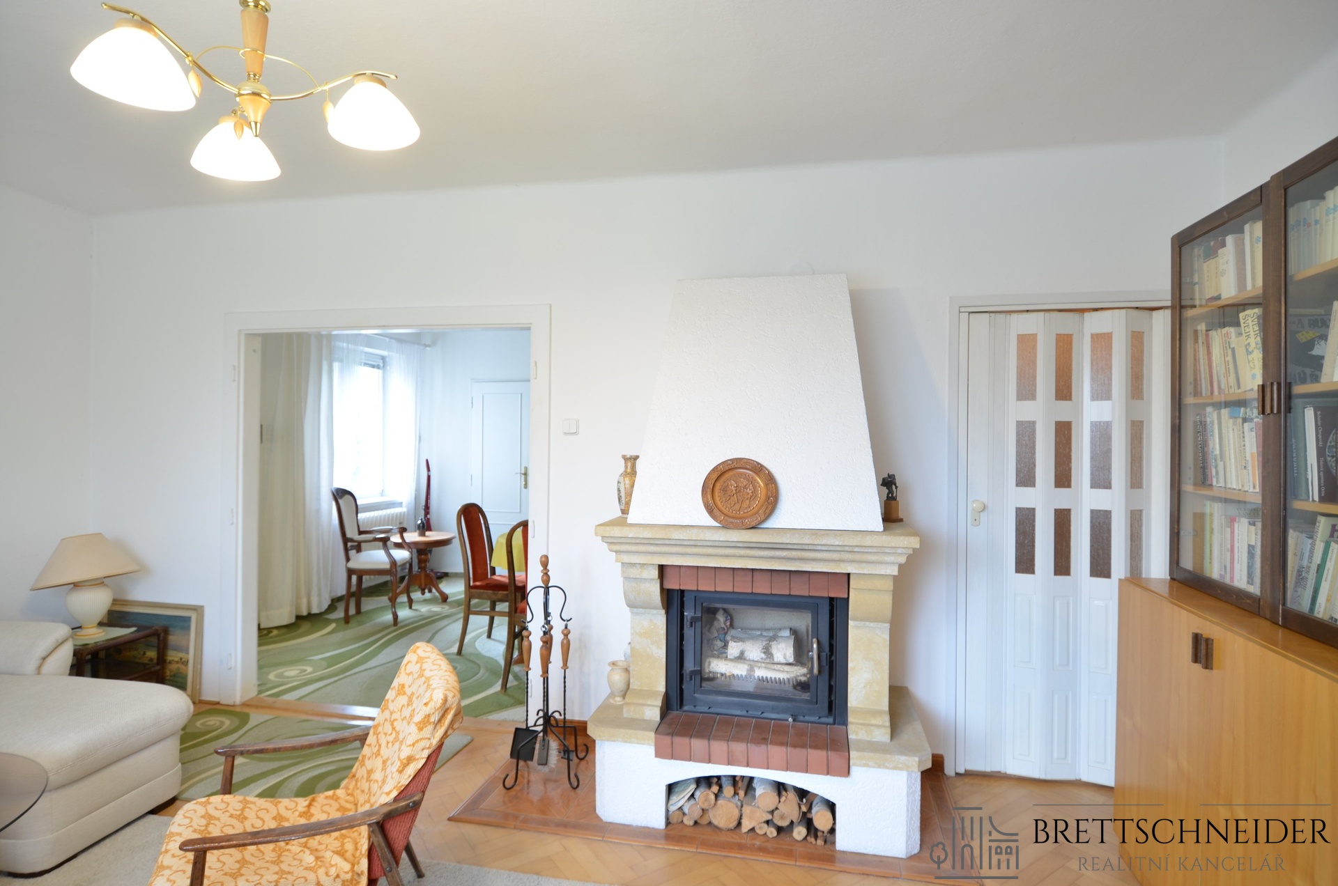 Byt v 1. nadzemním podlaží má původní dispozici 4+1. Prostor doplňuje zimní zahrada s navazující venkovní terasou.