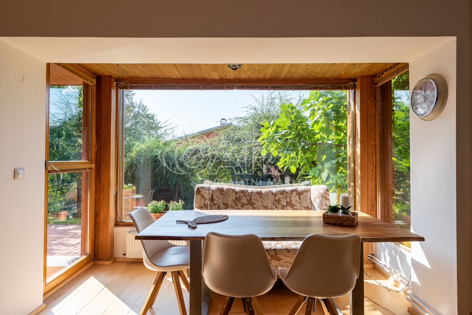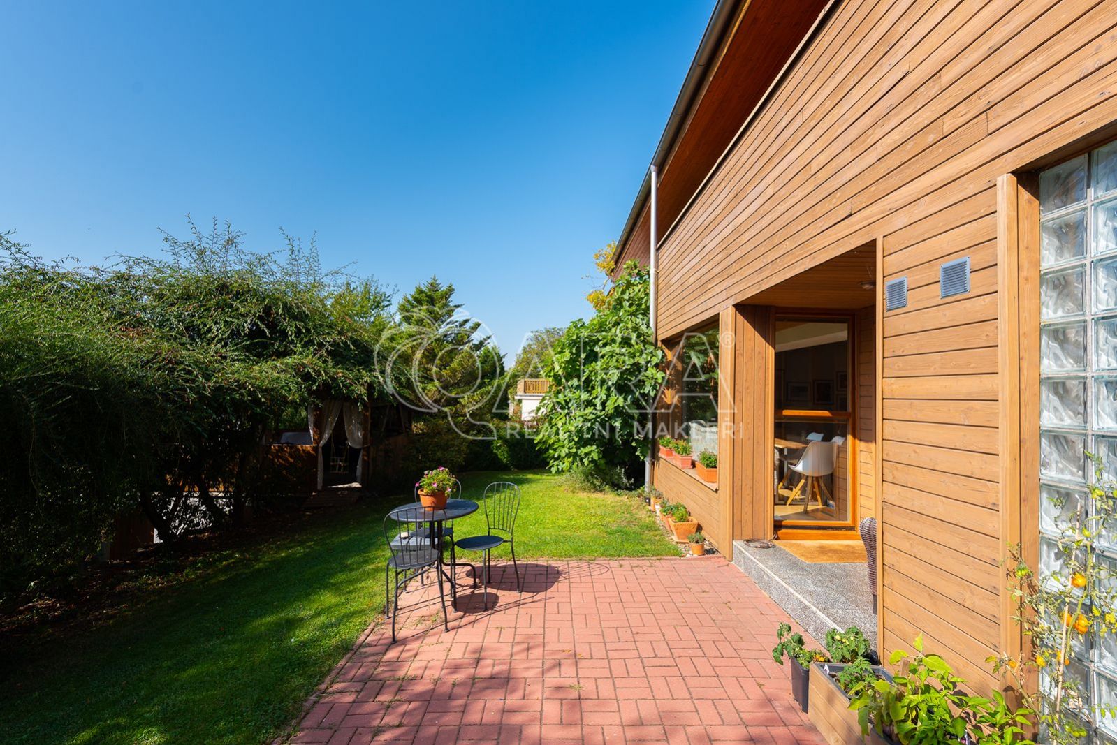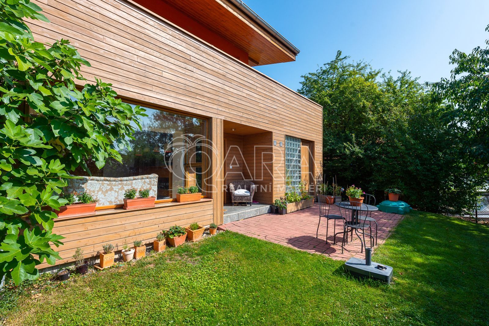 Součástí domu je rovněž garáž (27 m2). Na zahradě je vystavěný altán, kdy dole je úložný prostor a nahoře letní kuchyň s kouzelným posezením.