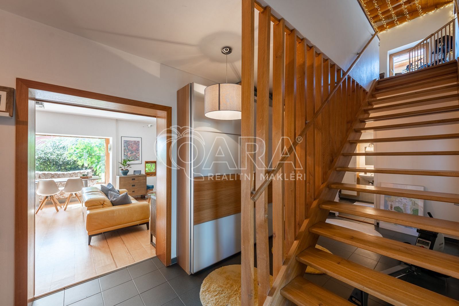 V přízemí je velkorysý obývací pokoj s jídelnou (36 m2) a kompletně zařízená kuchyň s vestavěnými spotřebiči a se vstupy na zahradu. Za kuchyní je prostorná spíž, v přízemí dále ještě ložnice s přístupem na zahradu, koupelna a toaleta. V 1. patře se nachází tři ložnice, koupelna s toaletou a velká terasa. V domě je kvalitní dřevěná dubová podlaha nebo dlažba. Vytápění je řešeno elektrokotlem a ohřev vody boilerem.