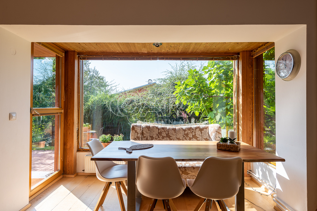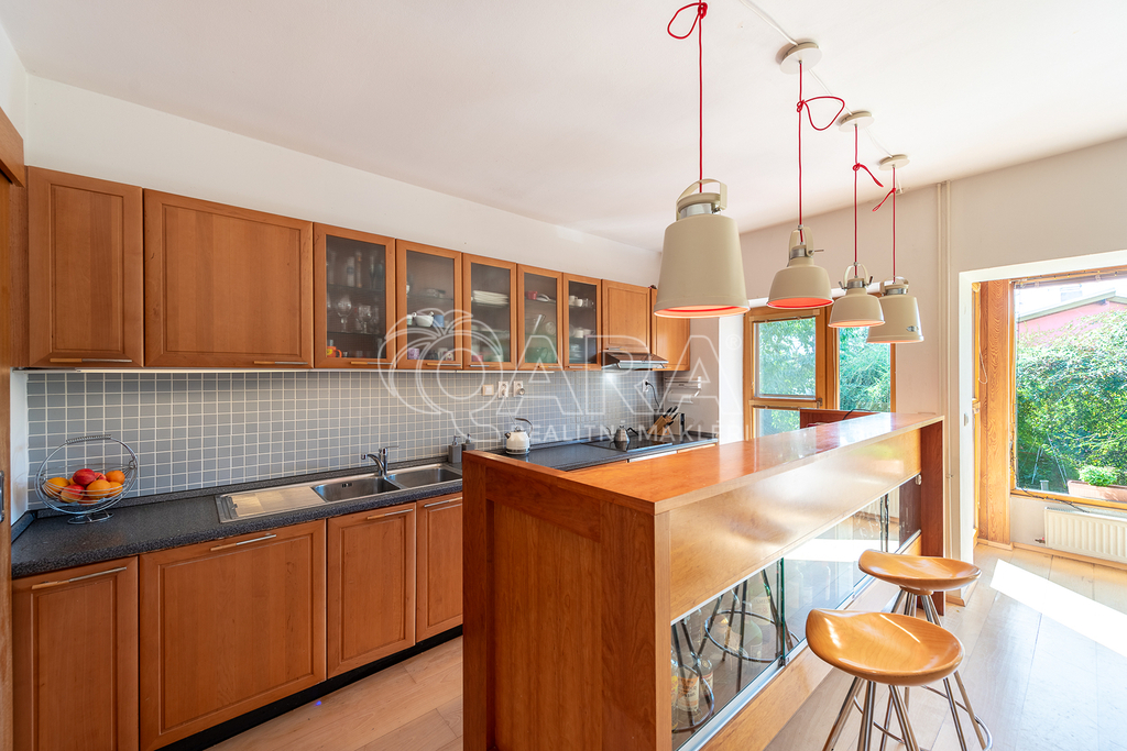 Nabízíme k pronájmu moderní prostornou vilu, která se nachází ve vyhledávané lokalitě pár minut od Prahy 6. Architektura a celkový koncept domu byly v roce 1998 oceněny titulem Dům roku. Zařízení nábytkem na fotkách neodpovídá současnému stavu, v domě je pár kusů základního nábytku.
