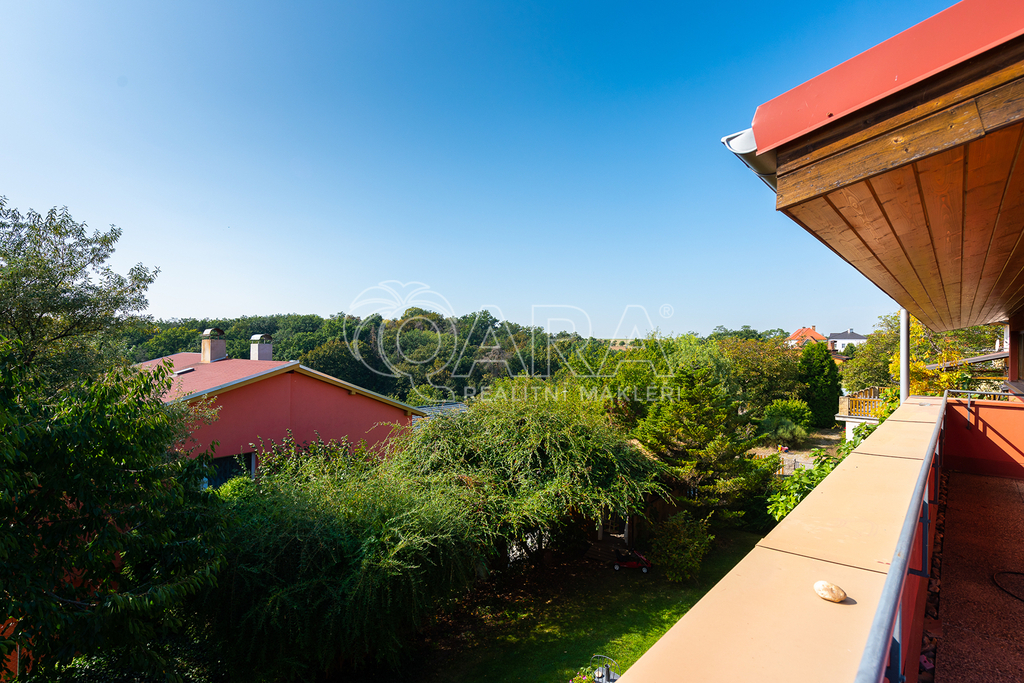 Dvoupodlažní dům 5+kk s garáží je charakteristický použitím přírodních materiálů a propojením se zahradou, která nabízí žádané soukromí. Důležitou součástí domu je rozlehlá terasa navazující na téměř všechny místnosti ve druhém podlaží. Díky krásnému výhledu na údolí je ještě umocněno všudypřítomné spojení s přírodou.