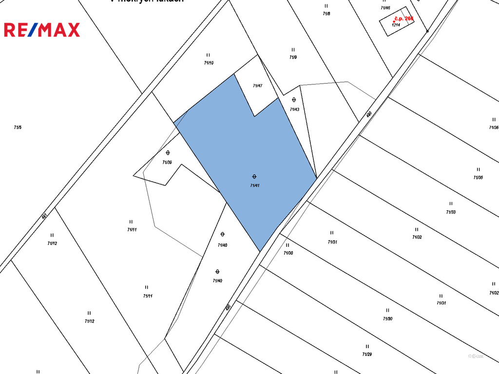 Příjezdová komunikace: pozemek je dobře přístupný z místních komunikací, což zajišťuje jeho bezproblémovou dopravní dostupnost.