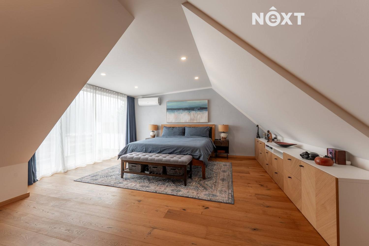 • Patro: Dřevěným schodištěm vystoupáte do prvního patra, kde se z hlavní chodby vstupuje do dalších pokojů a na druhou samostatnou toaletu. Hlavní ložnice je vybavena klimatizací a nabízí přímý vstup na terasu