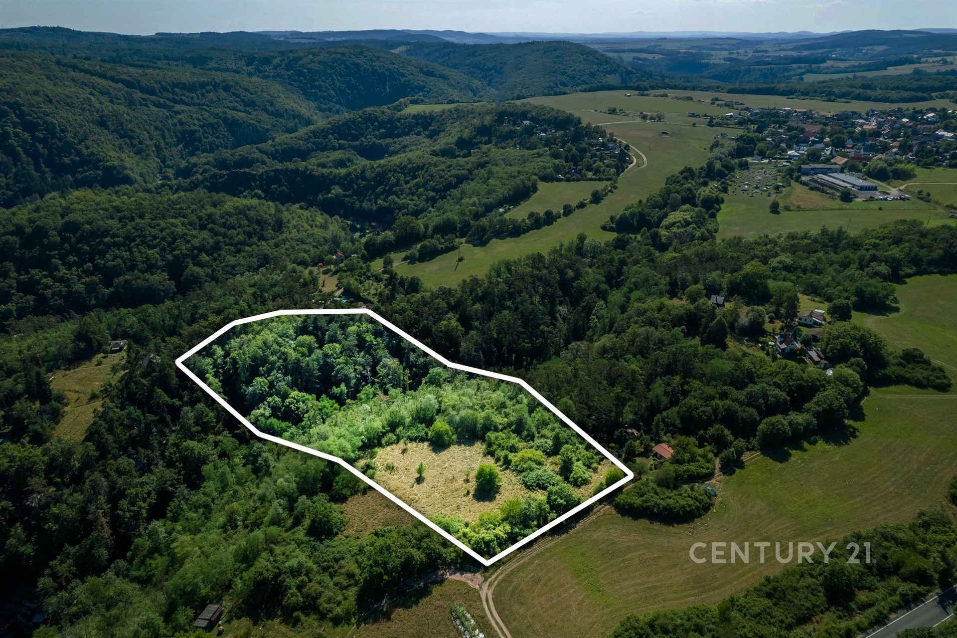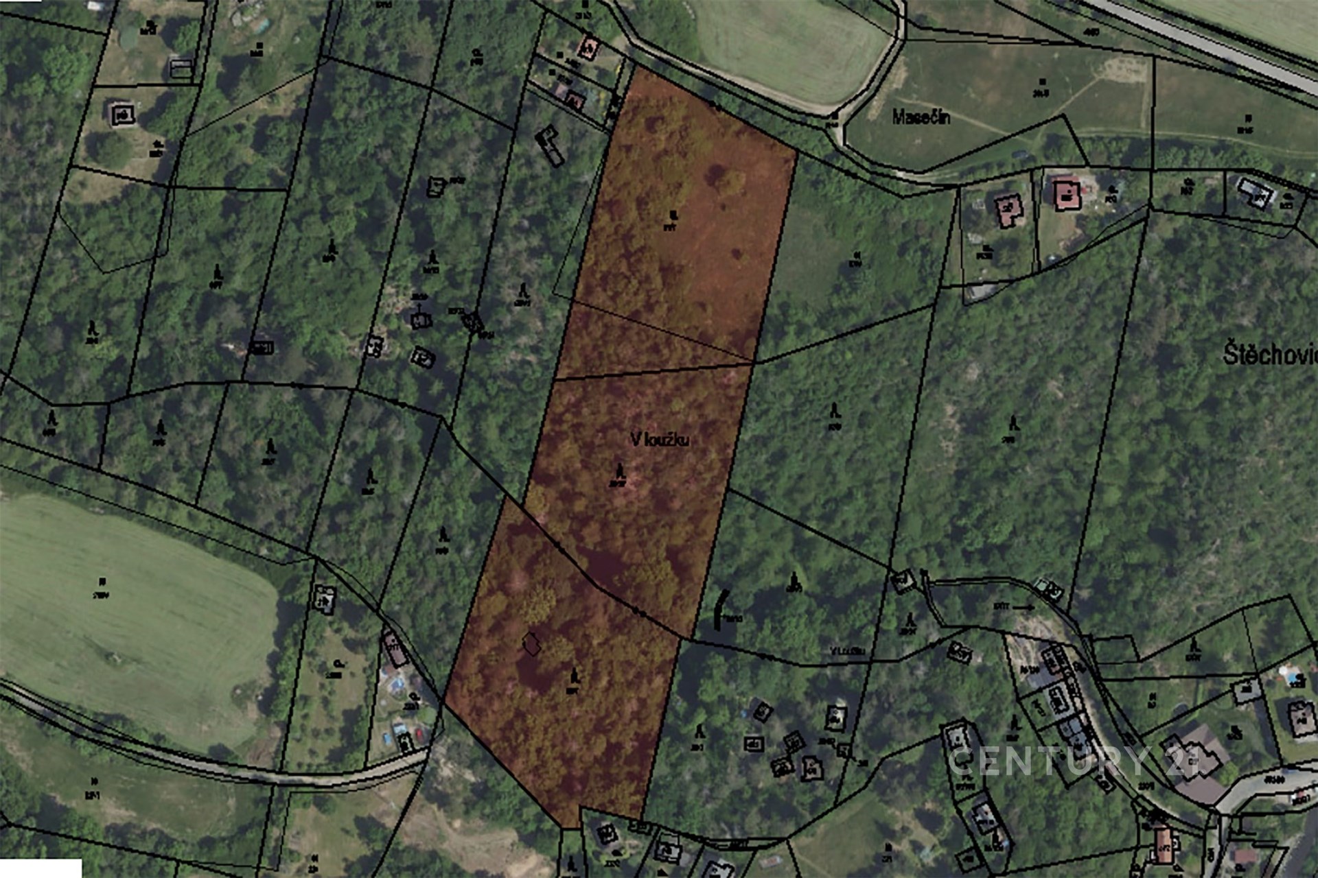 Dolní část pozemku se nachází ve vyhlášené chatové oblasti v údolí stejnojmenné říčky Kocáby.