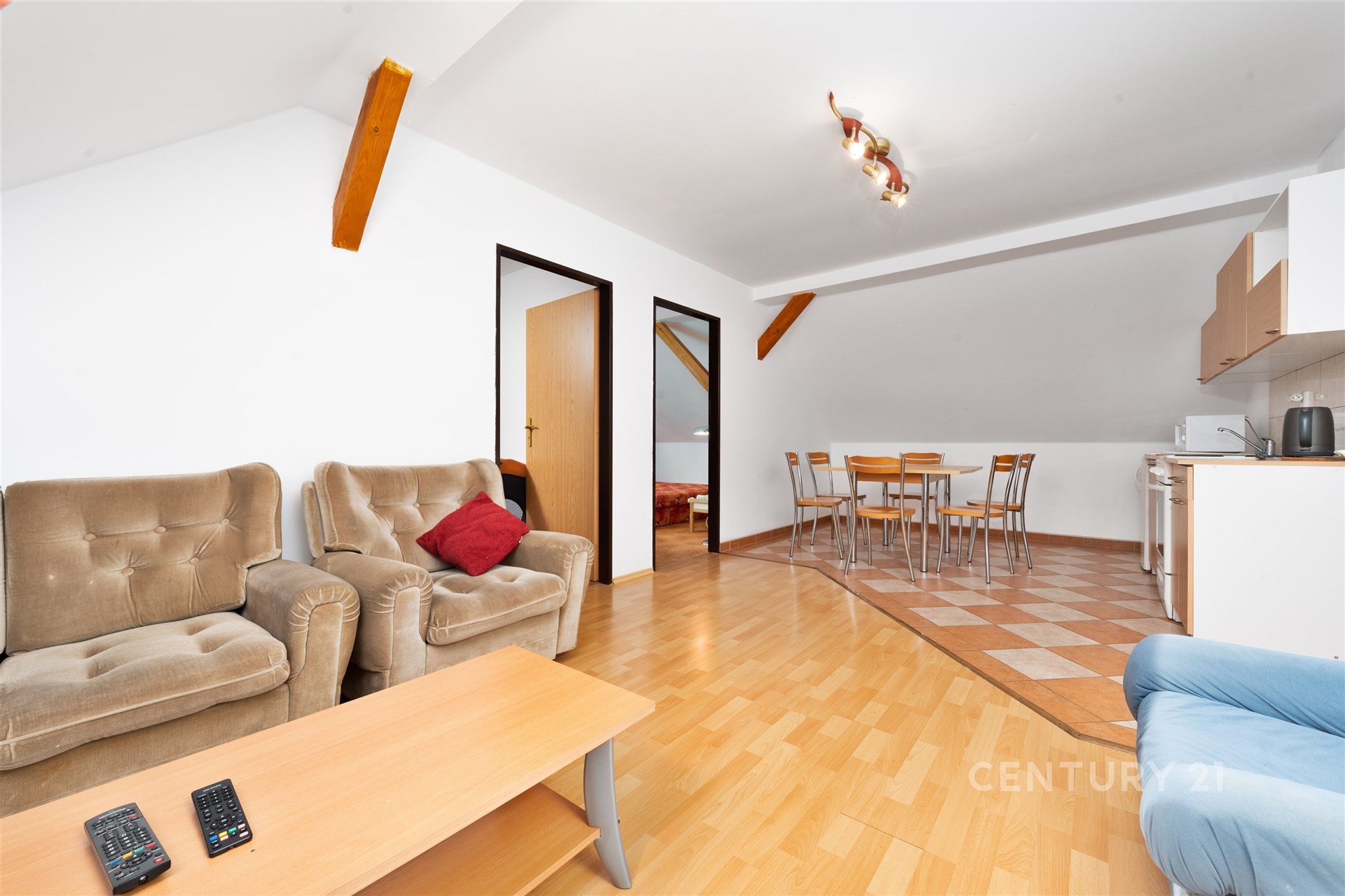 Uvnitř se ukrývají hned čtyři samostatné byty – každý s vlastní kuchyní, koupelnou i toaletou. Celkem je zde až 25 lůžek, což z tohoto domu dělá ideální volbu nejen pro velkou rodinu, ale i pro podnikání, třeba formou penzionu nebo krátkodobých pronájmů.