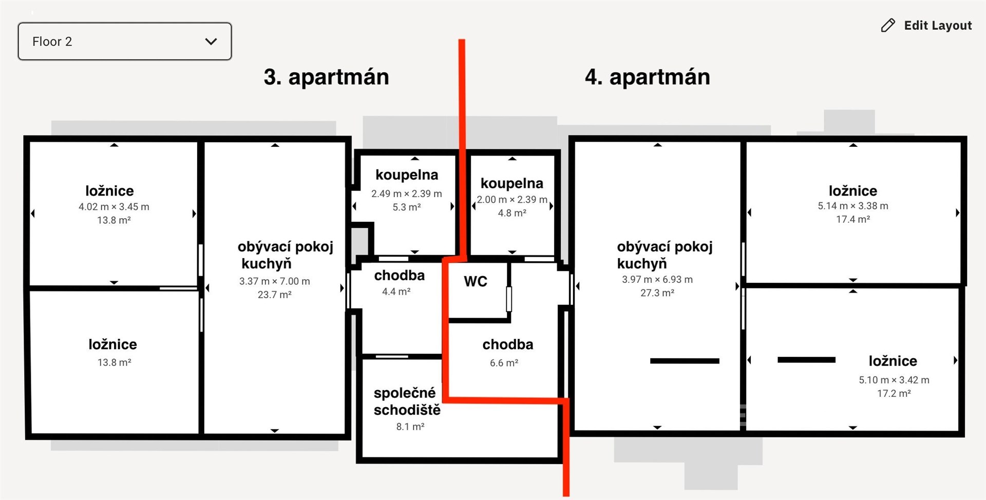 Další byty v patře nabízejí pohodlné zázemí pro hosty nebo více generací pod jednou střechou. A nechybí ani menší byt s vlastním vstupem – ideální třeba pro správce, hosty nebo starší členy rodiny.