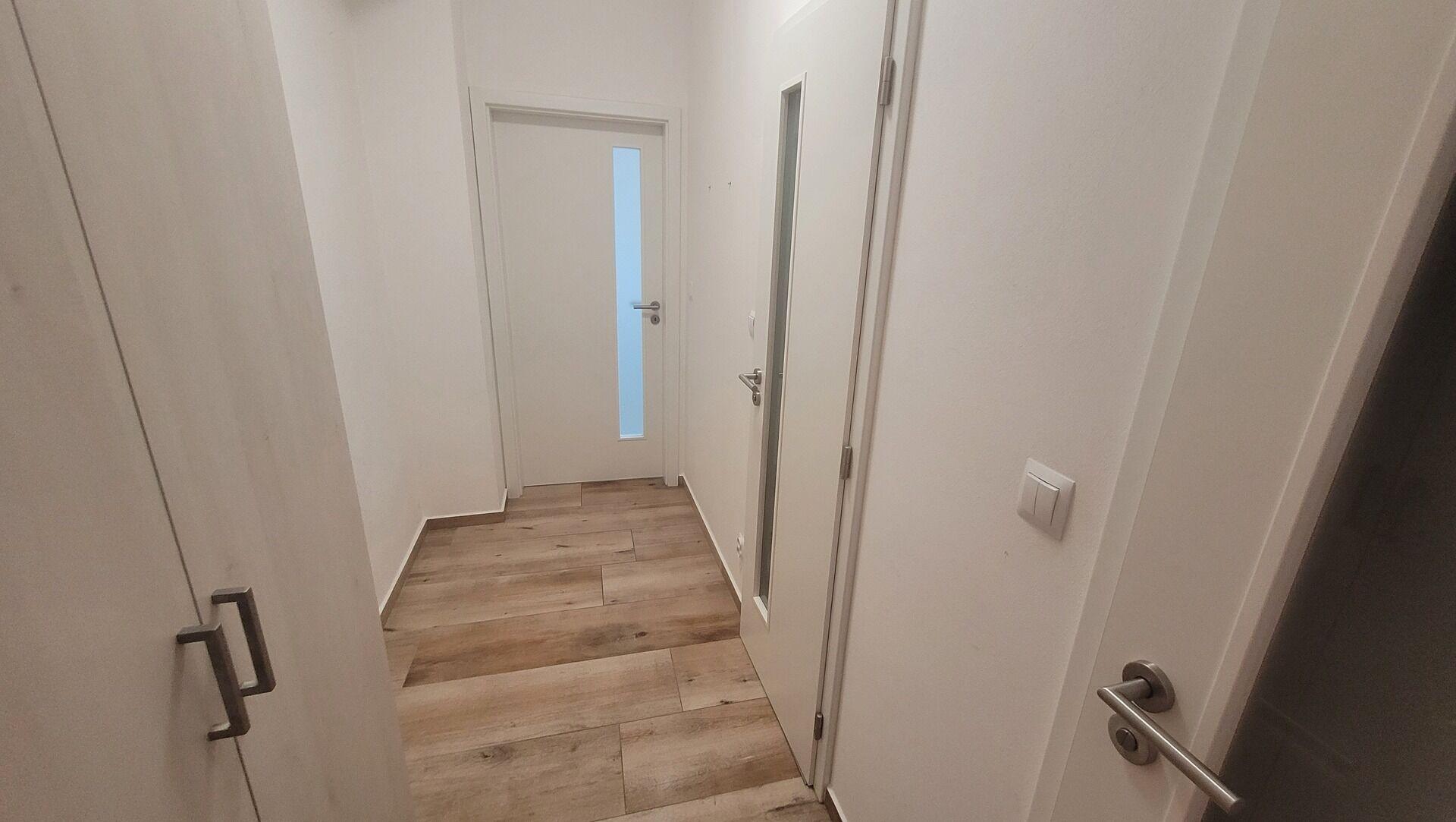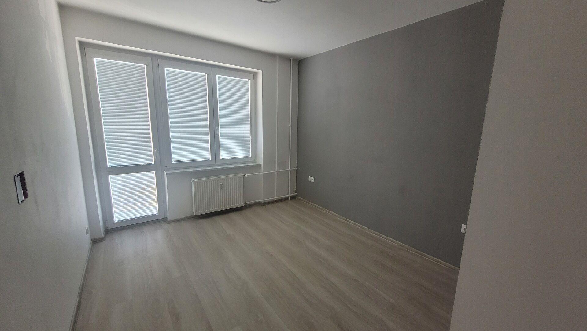 Byt se nachází ve třetím nadzemním podlaží bytového domu bez výtahu. Byt je po celkové rekonstrukci (voda, elektřina, kabelový datový rozvod, plovoucí podlahy, zděné jádro, sanitární technika, dveře, kuchyně). Vnitřní dispozice bytu: vstupní chodba, obývací pokoj s kuchyňským koutem, ložnice s balkonem a šatnou, malý pokoj, koupelna s vanou, samostatné WC. Kuchyňská linka je vybavena elektrickým sporákem, el. troubou a digestoří a vestavěnou myčkou. Byt je vytápěn ústředním topením s dálkovým rozvodem. Podlahová krytina jsou plovoucí podlahy nebo keramická dlažba. Byt má vlastní intercom a kabelové rozvody.