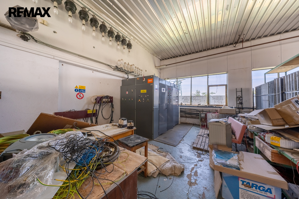 Součástí prodeje je také vlastní trafostanice (generální oprava před 2 lety), která spolu s FVE zajišťuje dostatečné energetické kapacity pro celý areál. Hala je dispozičně rozdělena na kancelář, technické zázemí, prostor pro sociální zařízení a tři prostorné oddělené skladovací nebo výrobní prostory. Přístup do haly zajišťují jedny automatické sekční vrata (z roku 2023) a dvoje starší plechová vrata. Objekt je vybaven kamerovým systémem, vjezd do areálu je zabezpečen závorou, kterou lze ovládat dálkově i přes telefon.