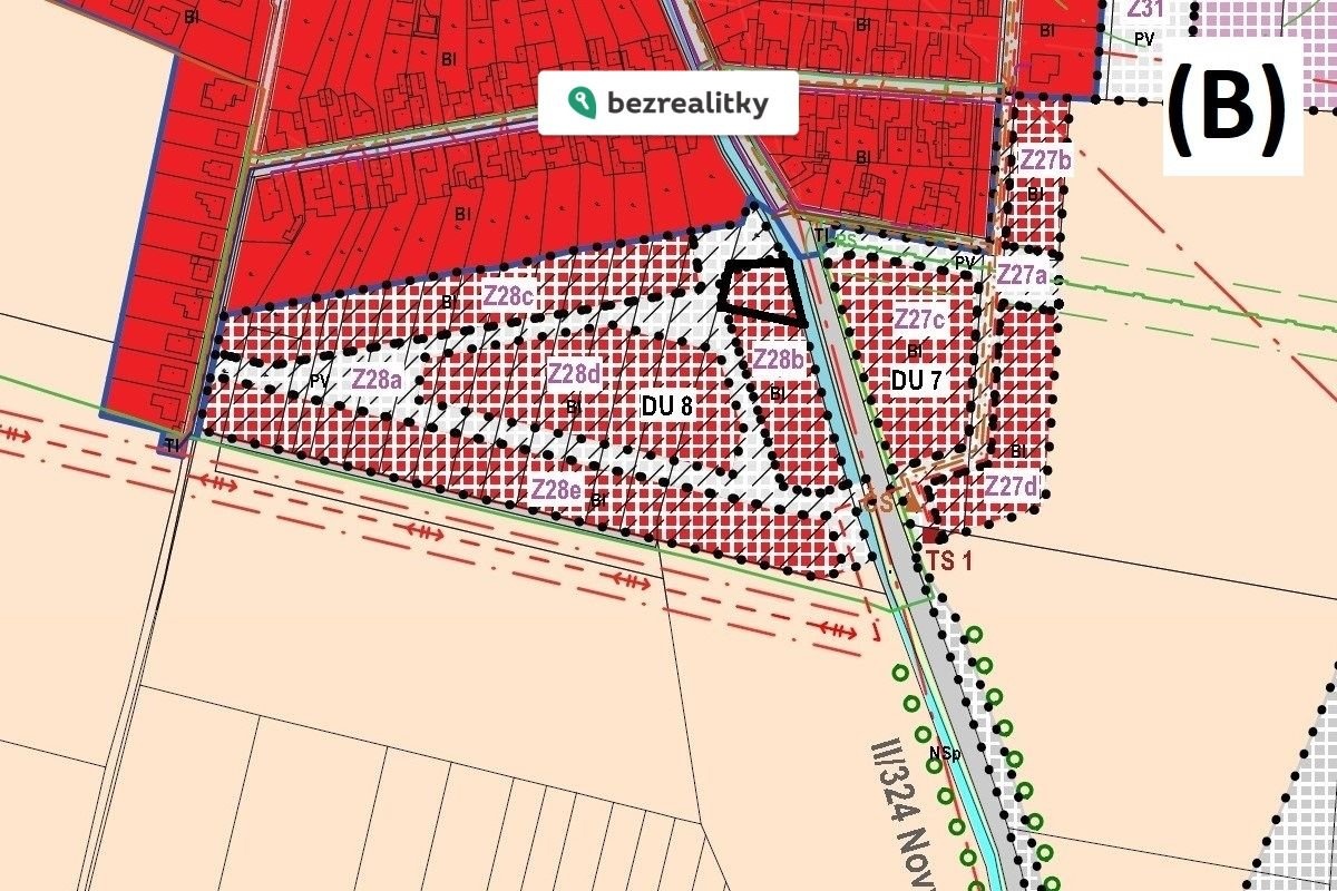 Pořizovaný nový ÚP: plochy pro rodinné domy – městské a příměstské (B),