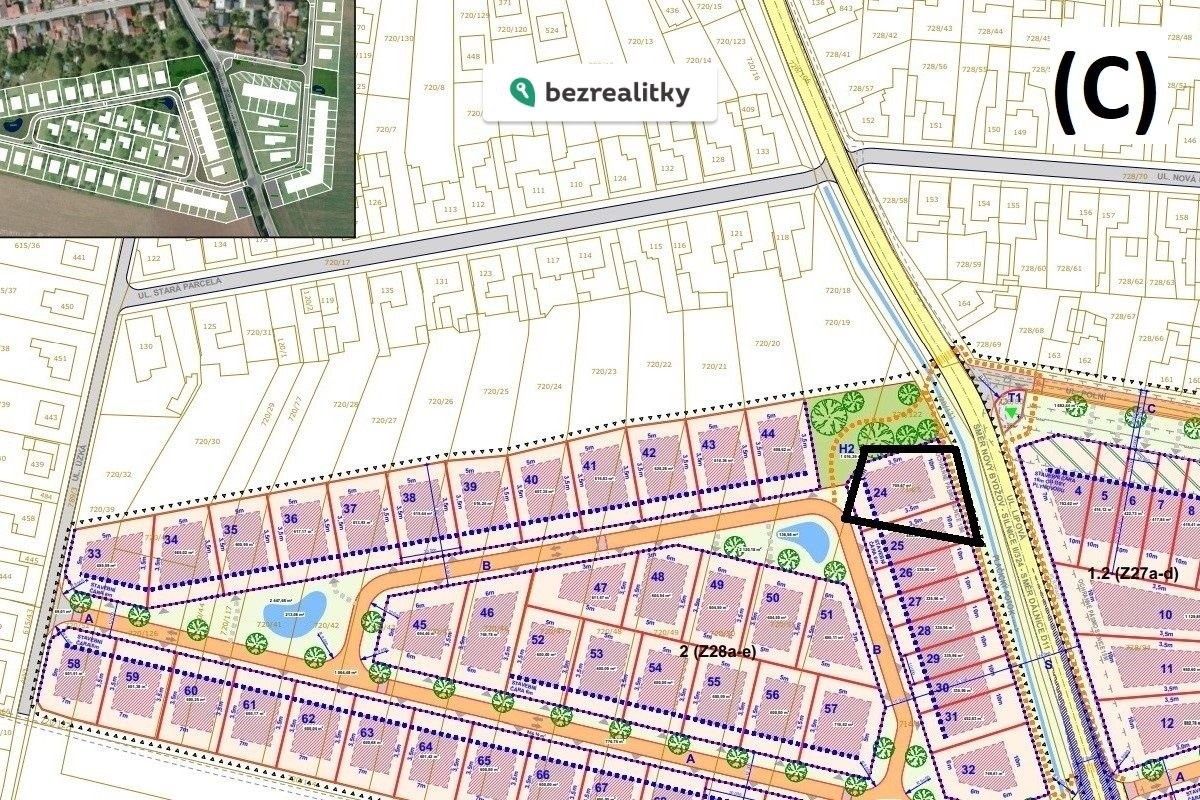 Schválená územní studie: navrhuje celkem 9 RD v navrženém stavebním bloku (C).
