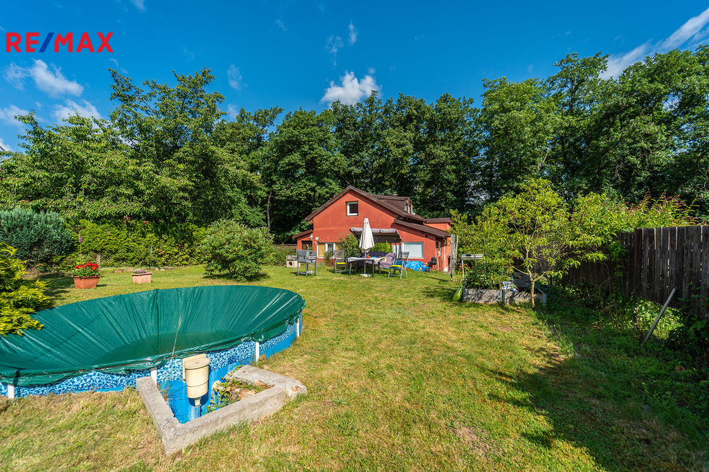 Celkový pozemek má velikost 495 m2. Krásná a pečlivě udržovaná zahrada je skutečnou oázou klidu. Součástí pozemku je také bazén, který v letních měsících poskytne příjemné osvěžení.