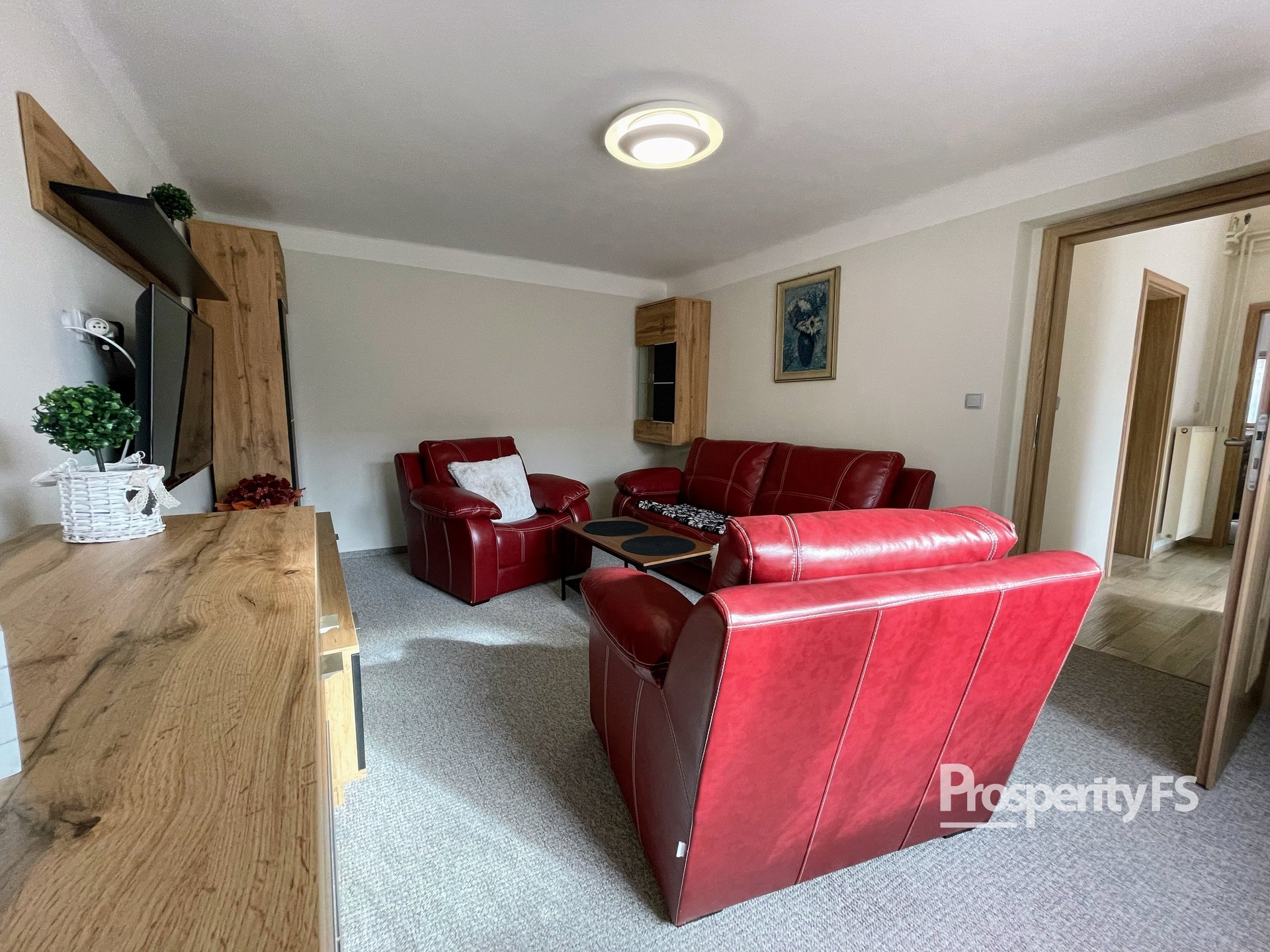 • Vybavení: plně zařízeno dle fotografií, včetně elektroniky (např. televize, lednice, sporák, pračka, mikrovlnná trouba a další). Z vybavení mohou majitelé odebrat červený gauč s křesly.